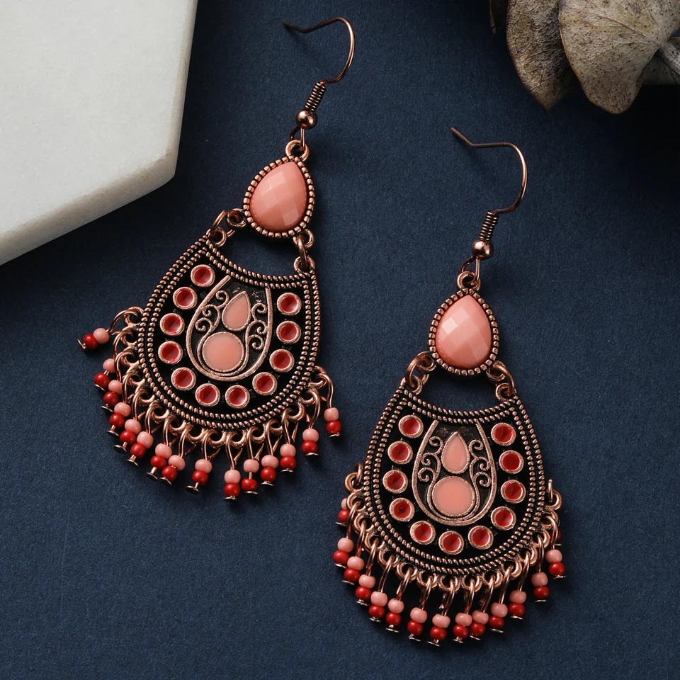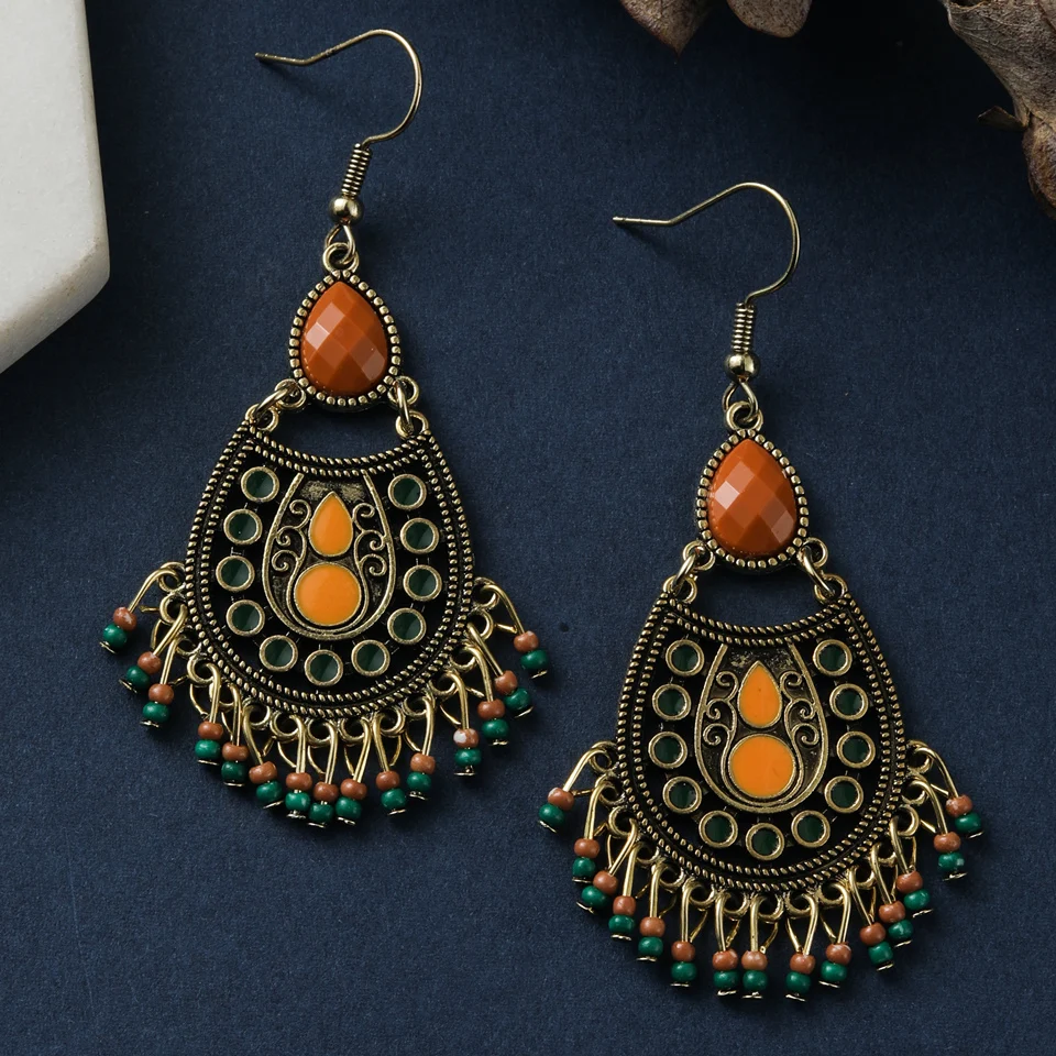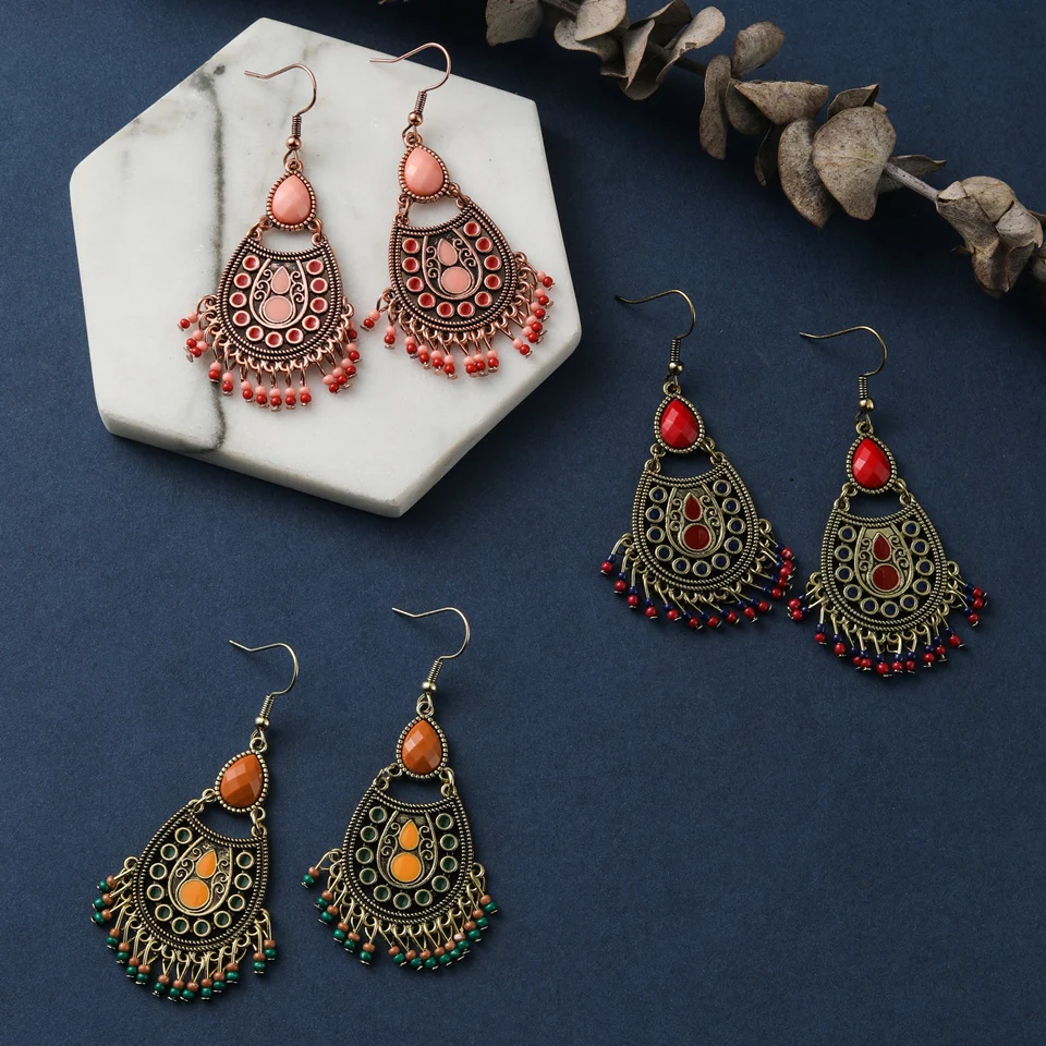 victoria’svogue Boho Ethnic Rose Golden Statement Beads Tassel Dangle Drop Earrings for Women Female Fashion 2021 Jewelry Accessories