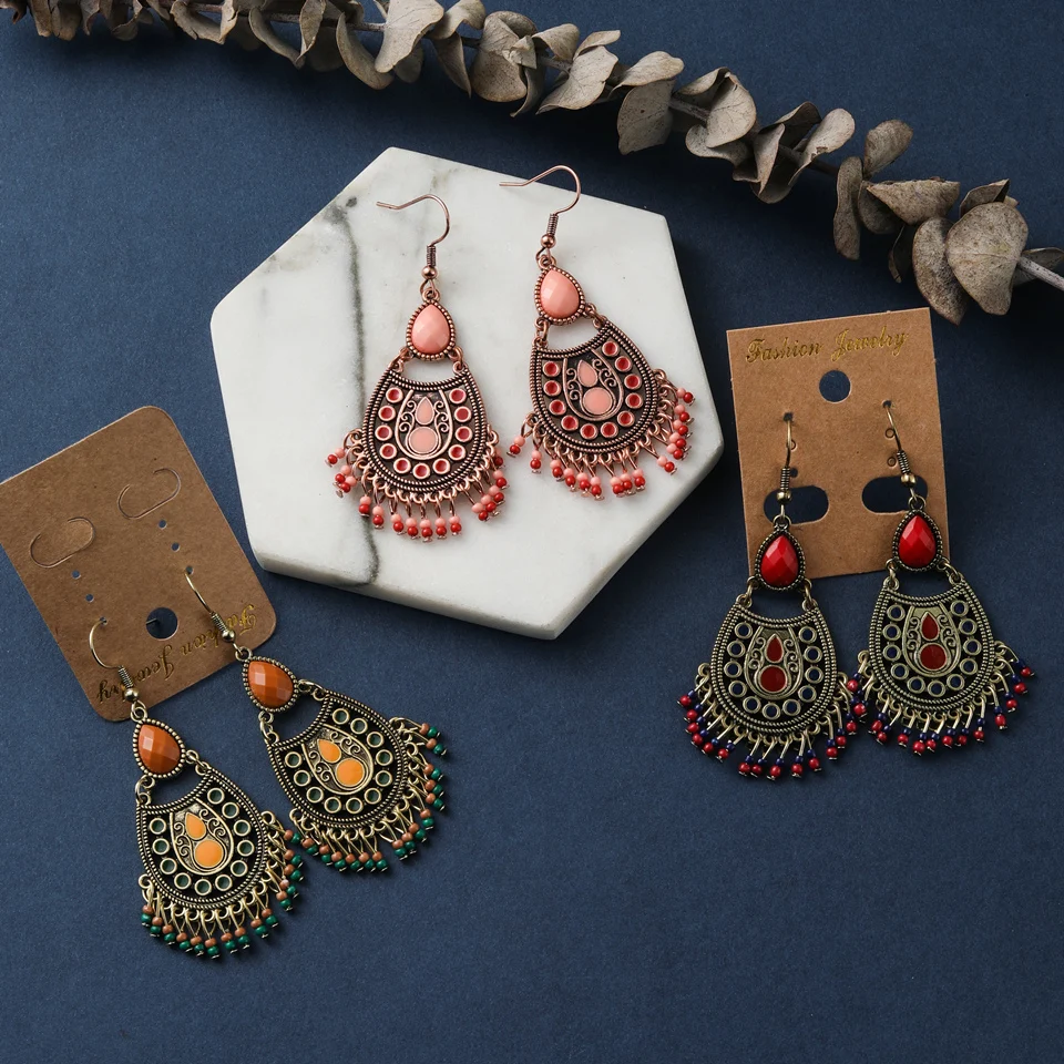 Vintage Boho Ethnic Rose Golden Statement Beads Tassel Dangle Drop Earrings for Women Female Fashion 2019 Jewelry Accessories