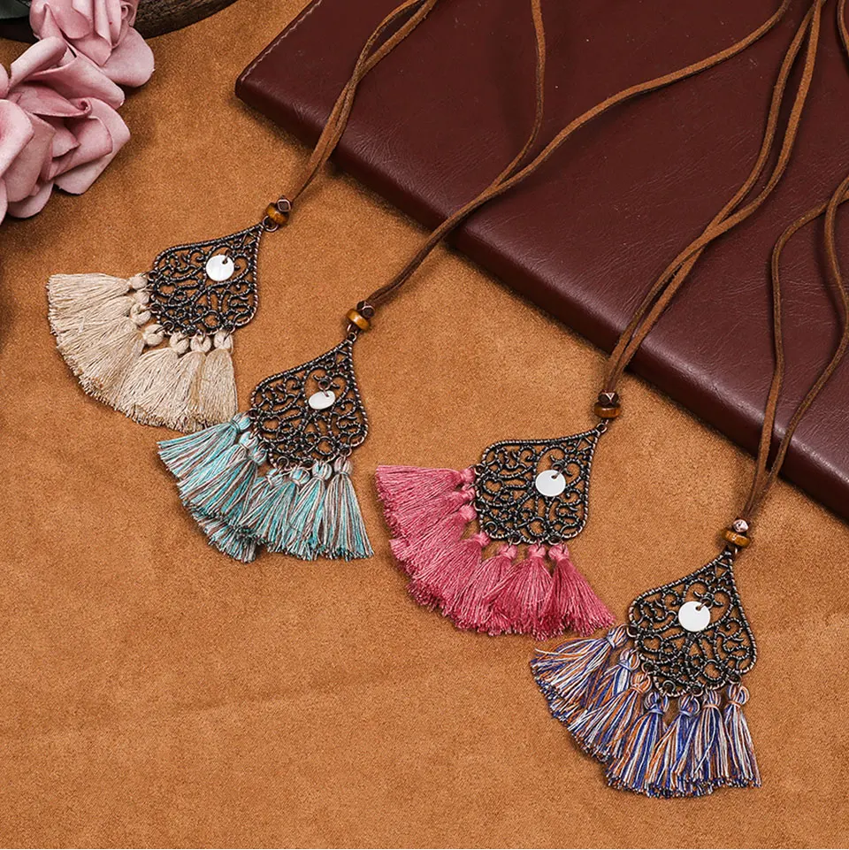 victoria’svogue Vintage Boho Ethinic Tassel Pendant Necklace for Women Female 2021 Fashion Winter Sweater Chain