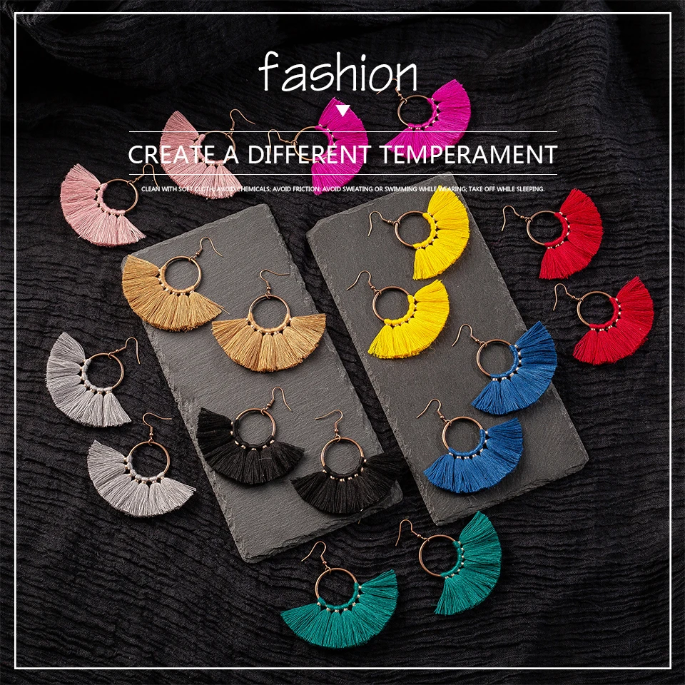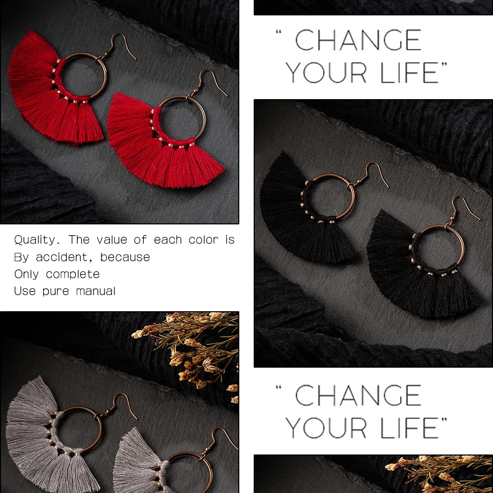Vintage Dangle Drop Tassel Earrings for Women Female Fashion 2019 Statement Ethnic Bohemian Boho Earrings Jewelry Accessories