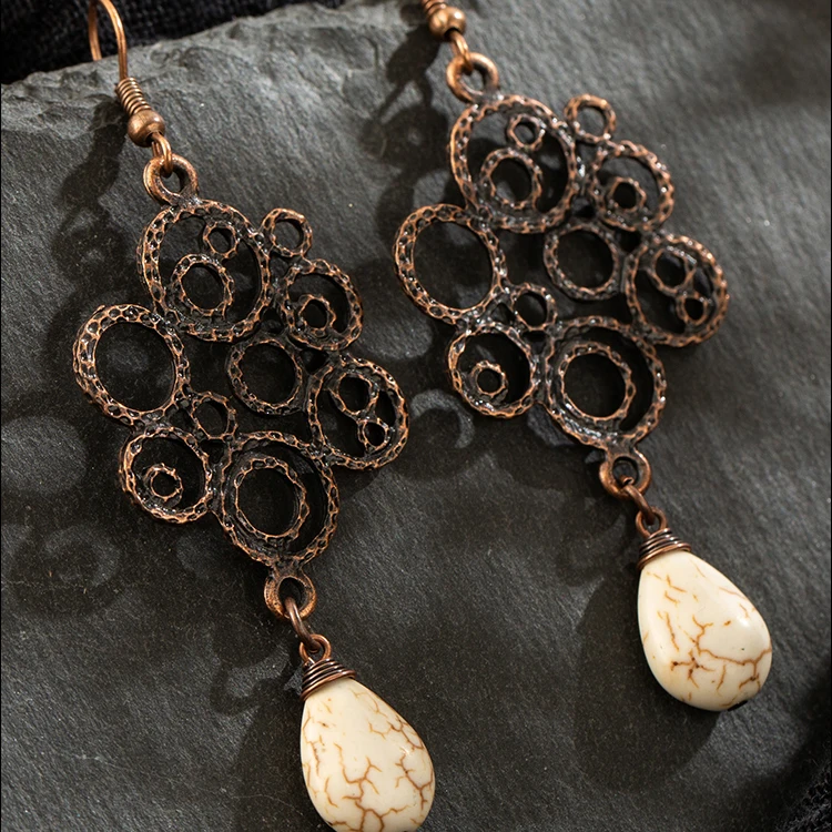 Vintage Ehtnic Dangle Drop Earrings with Stone for Women 2019 Anniersary Wedding Hanging Earrings Fashion Jewelry Accessories
