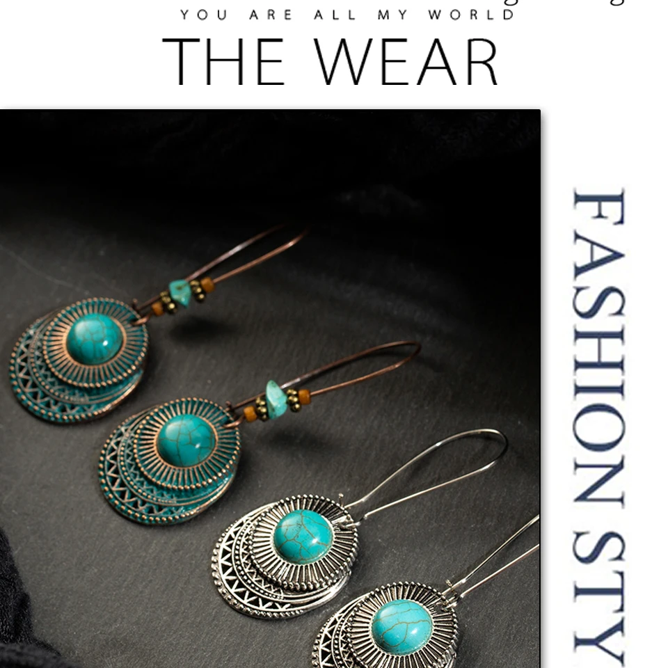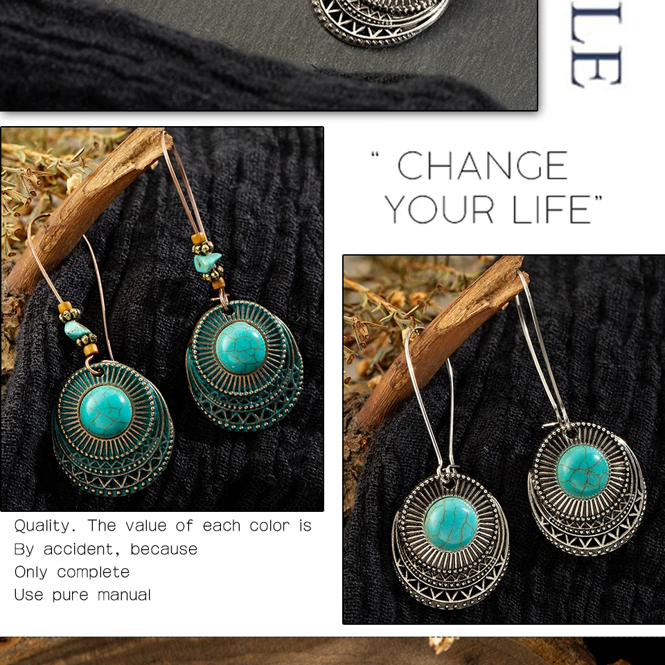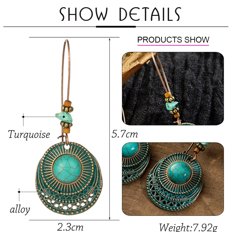 Vintage Ehtnic Dangle Drop Earrings with Stone for Women 2019 Wedding Engagement Hanging Earrings Fashion Jewelry Accessories