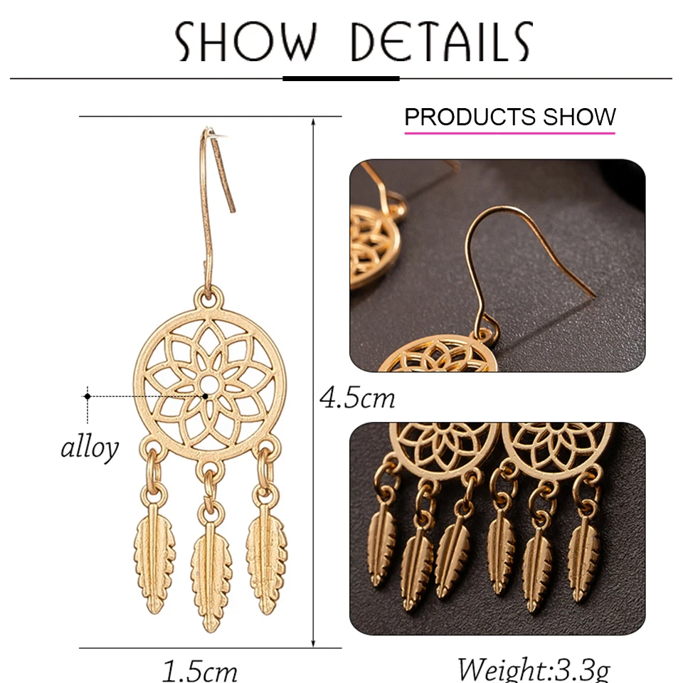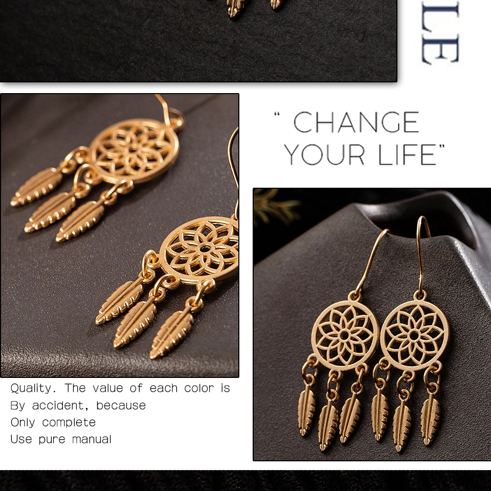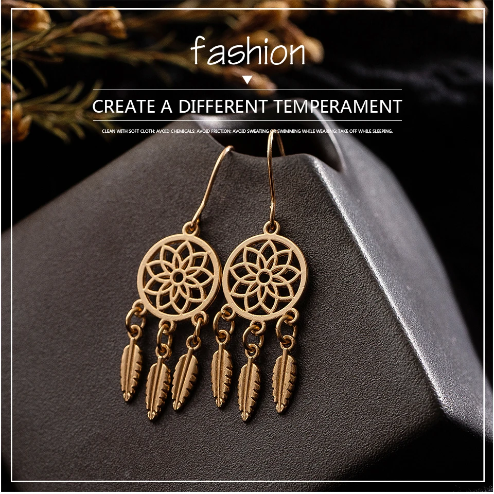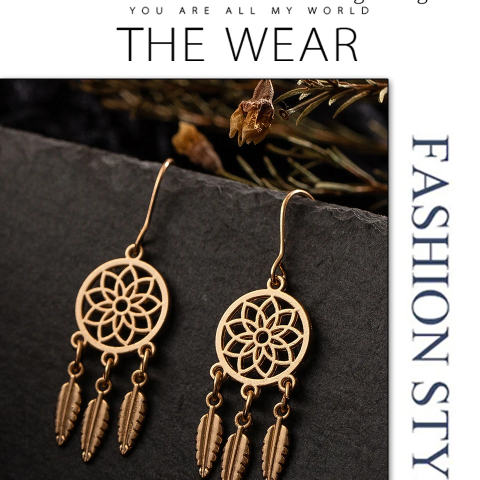 victoria’svogue Vintage Ethnic Golden Flower Dangle Drop Earrings Hanging for Women Female Fashion Jewelry Ornaments Accessories