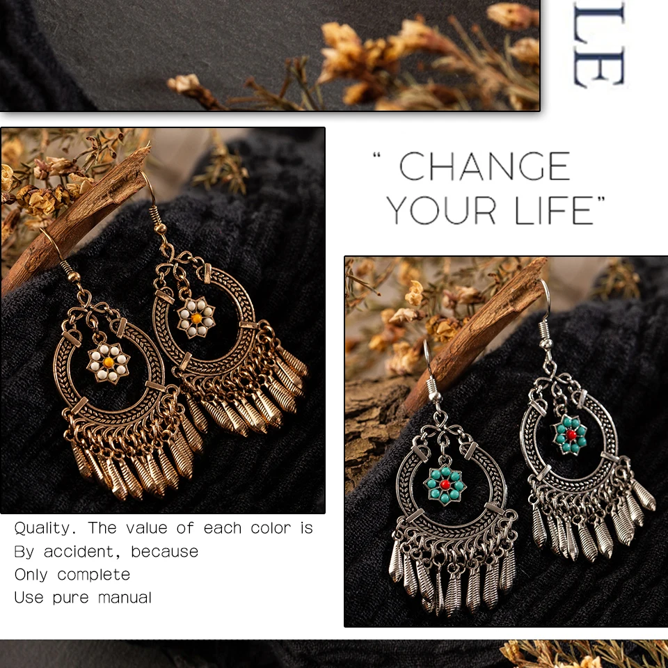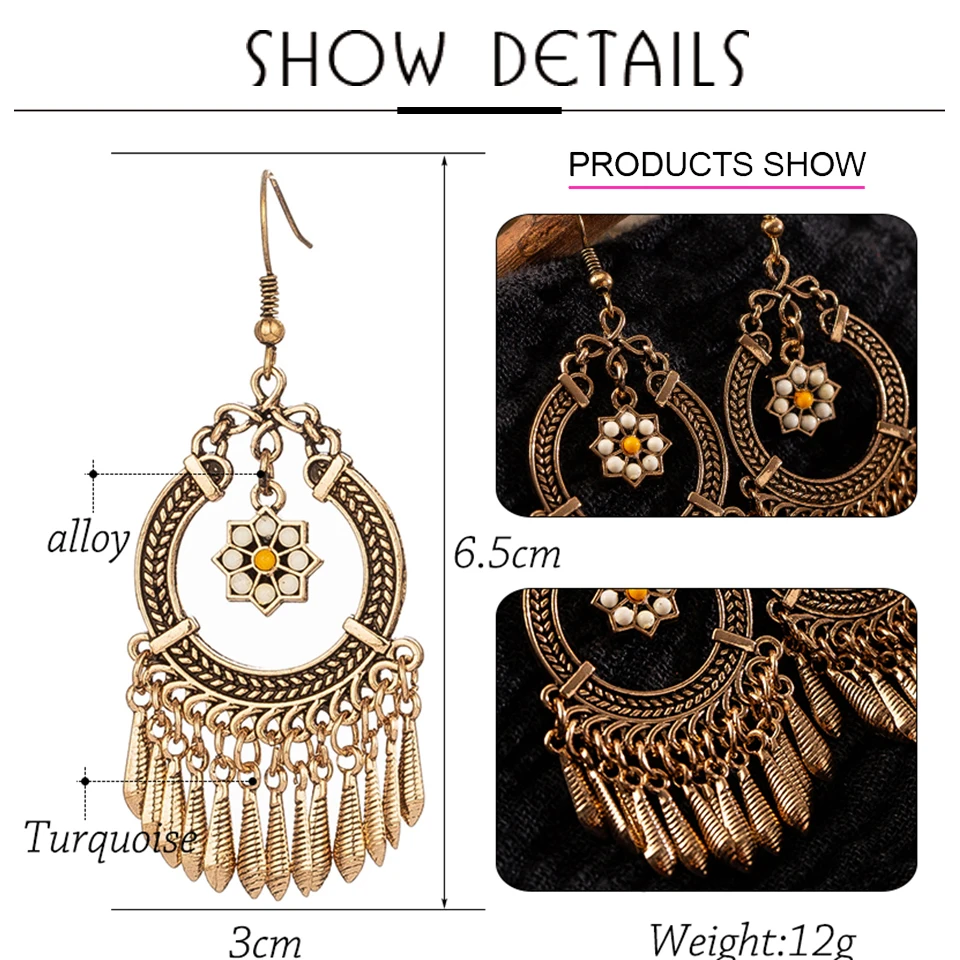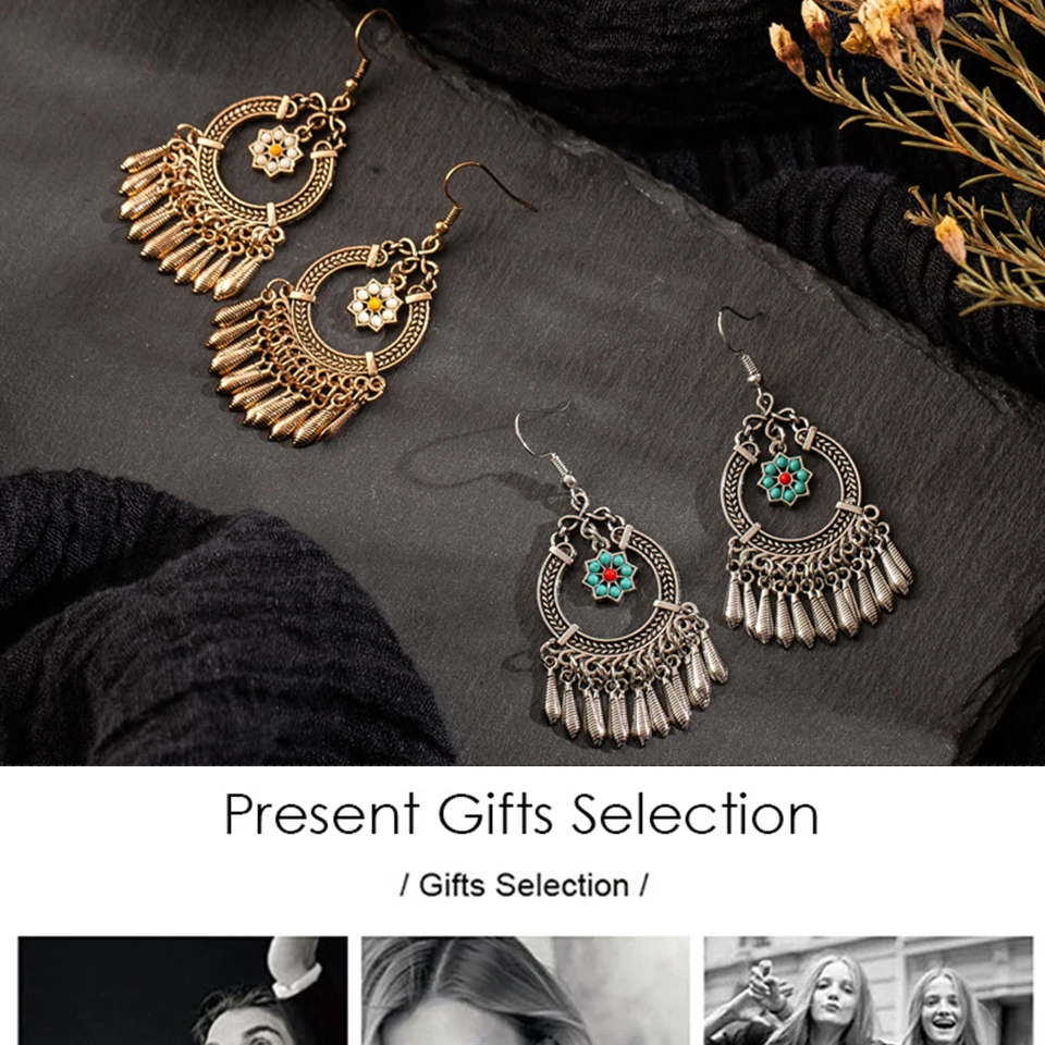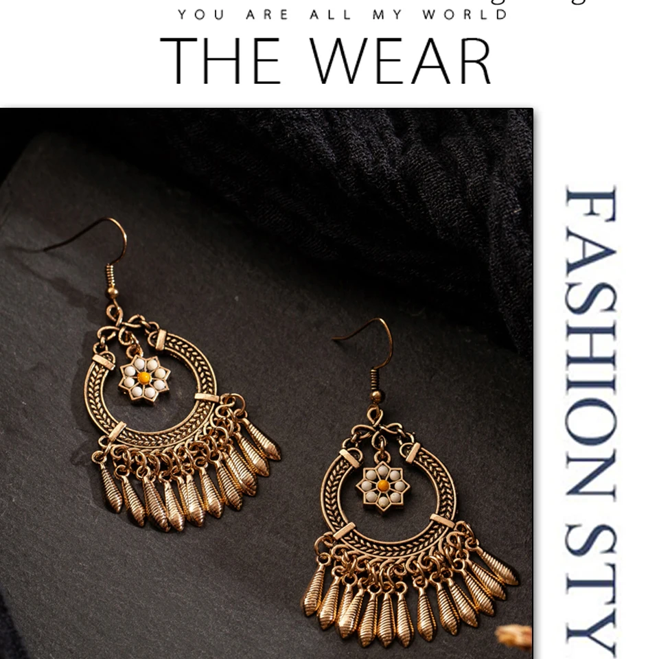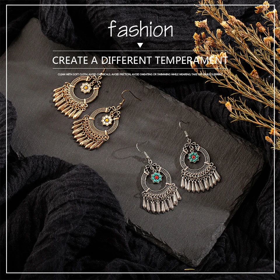 victoria’svogue Vintage Ethnic Tassel Hanging Dangle Drop Earrings for Women Female Anniversary Party Wedding Jewelry Ornaments Accessories