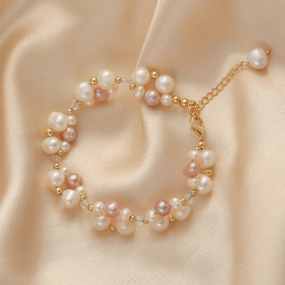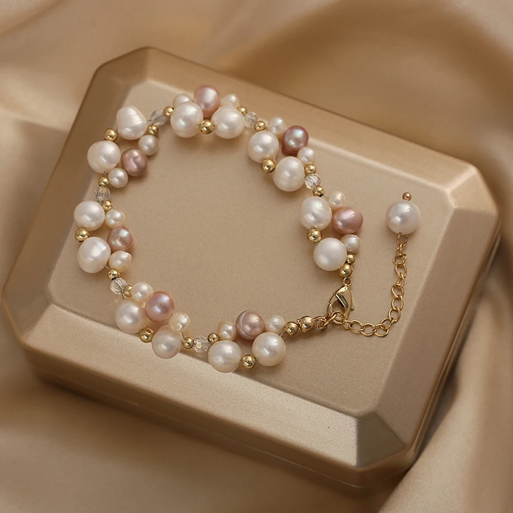 Vintage Palace Style Jewelry Fully Handmade Beaded Irregular Size Freshwater Pearl Bracelet for Women Best Gift for Her