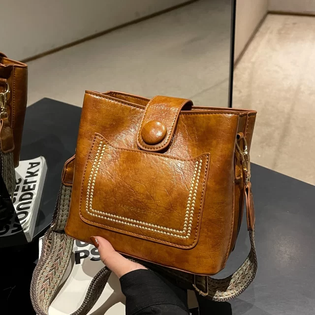 Victoria’s Vogue Vintage Simple PU Leather Bucket Crossbody Bags for Women Luxury Designer Handbagt Lady Black Shoulder Bag