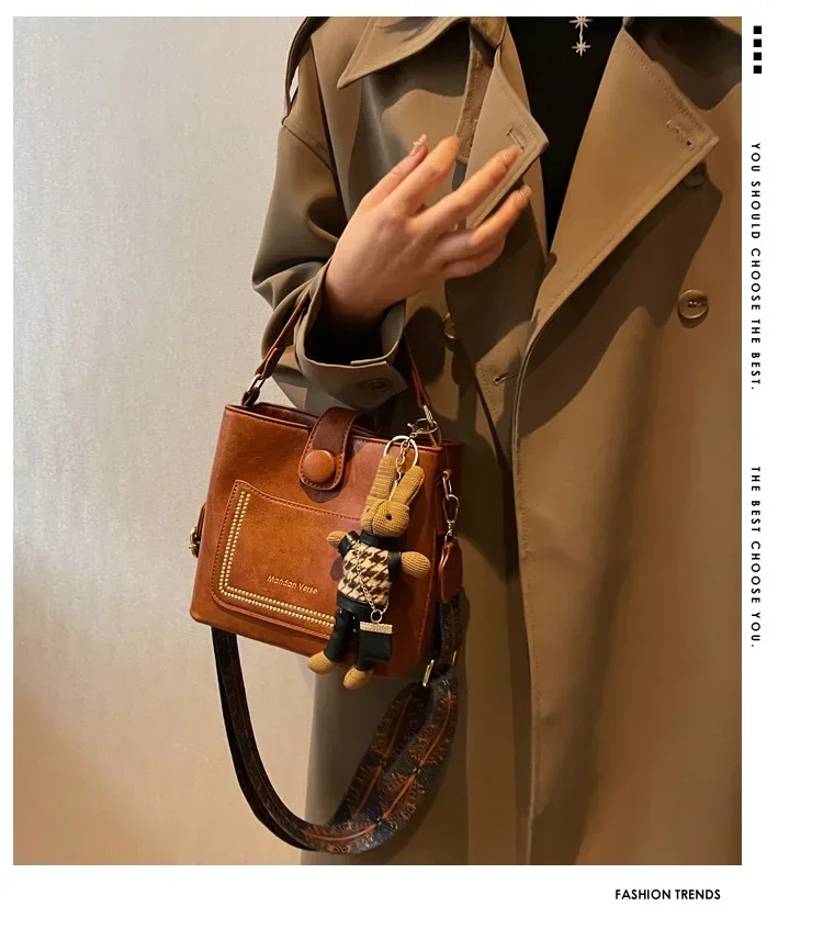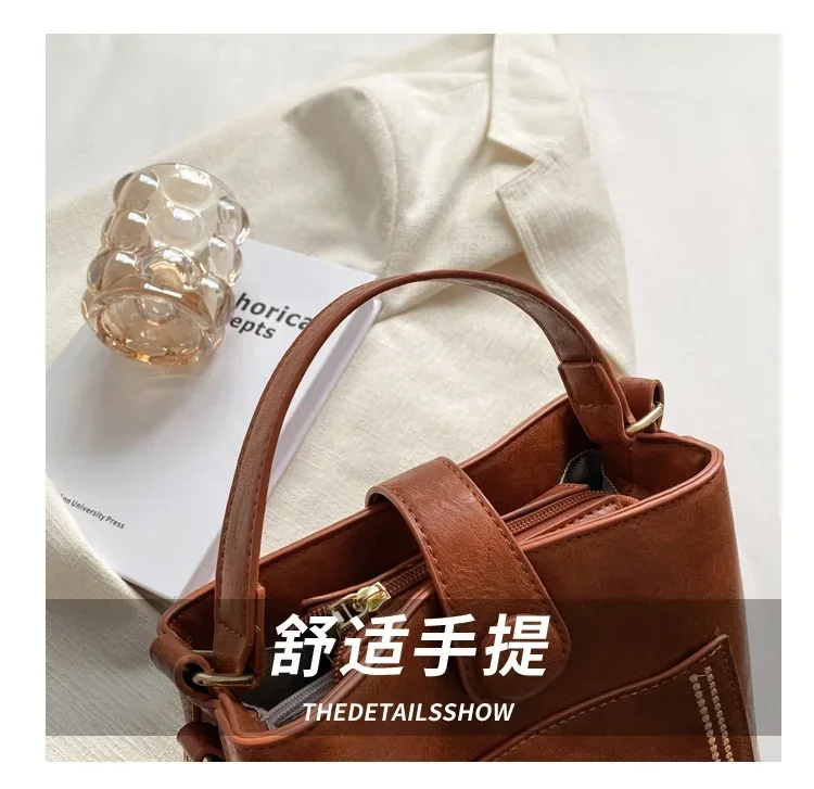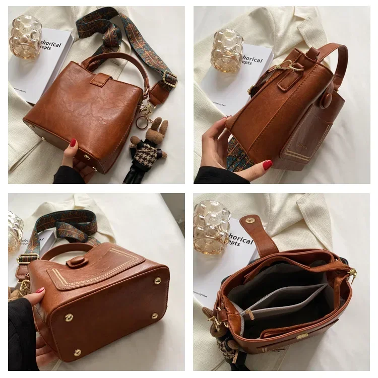 Victoria’s Vogue Vintage Simple Small PU Leather Bucket Crossbody Bag for Women 2024 Designer Fashion Lady Luxury Black Shoulder Handbag
