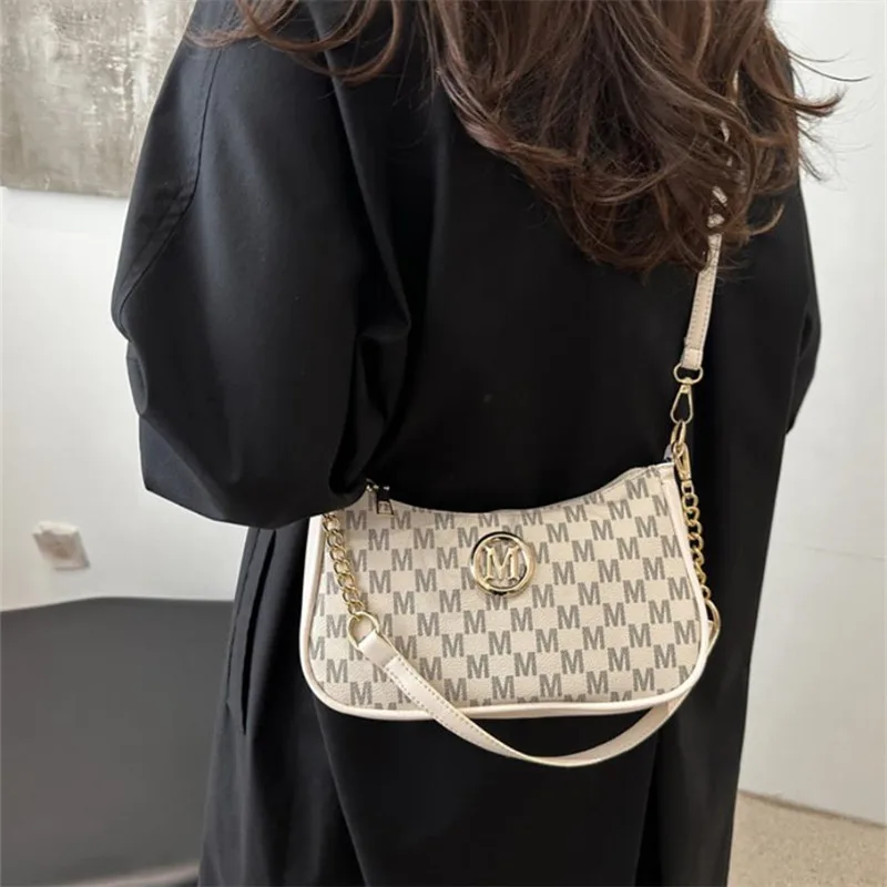 Victoria’s Vogue Vintage Style Handbag Crossbody Bag, Gold Letter ‘M’ Design Pu Leather Shoulder Messenger Bag, Synthetic Leather Tote Bag, Purse