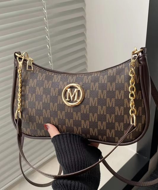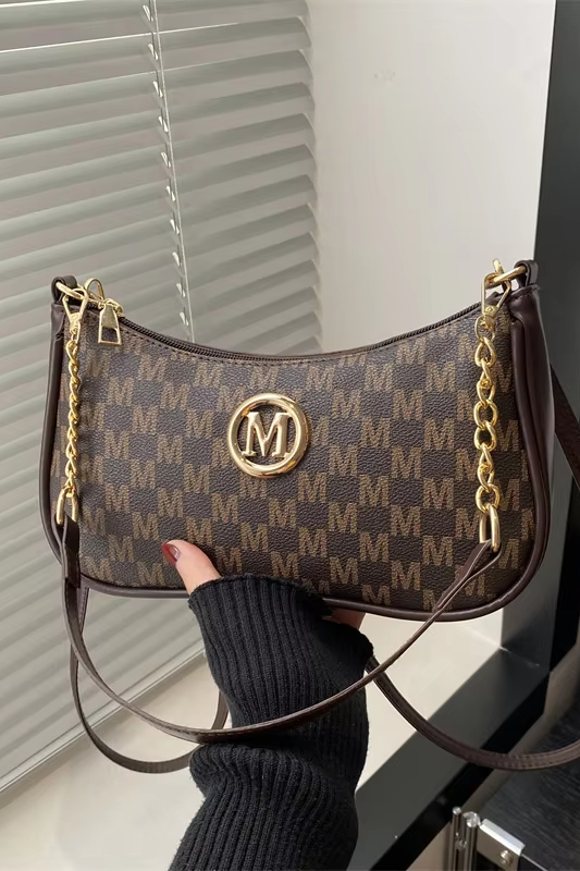 Victoria’s Vogue Vintage Style Handbag Crossbody Bag, Gold Letter ‘M’ Design Pu Leather Shoulder Messenger Bag, Synthetic Leather Tote Bag, Purse