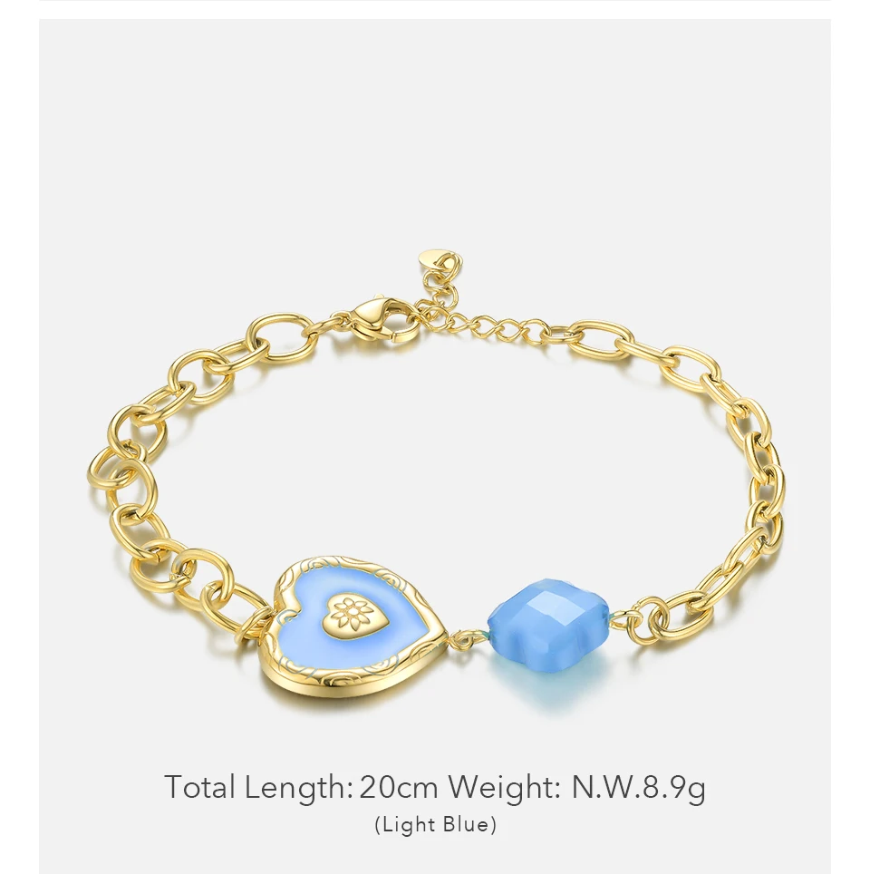 Beautiful bracelet in blue. Light enough. Beautiful blue color. Not a big wrist. I bought it as a gift, now I want such a bracelet.