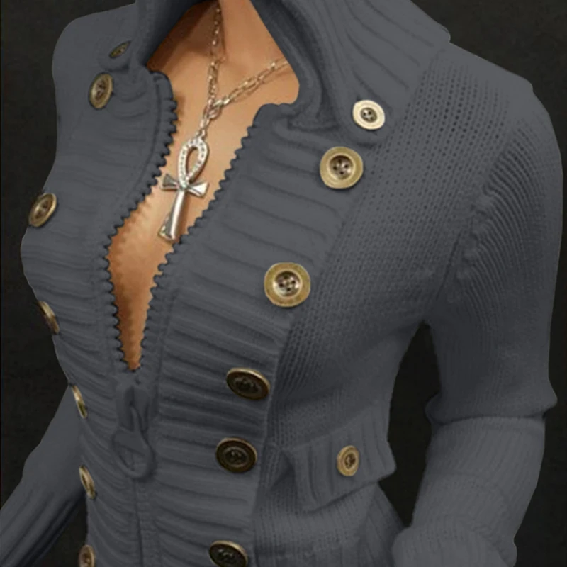 victoria’svogue 2021 Warm Autumn Winter Thickening Knitted Sweater Women Casual Zipper Polo Collar Loose Knitted Pullovers Female Buttons Jumper