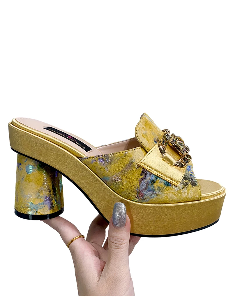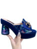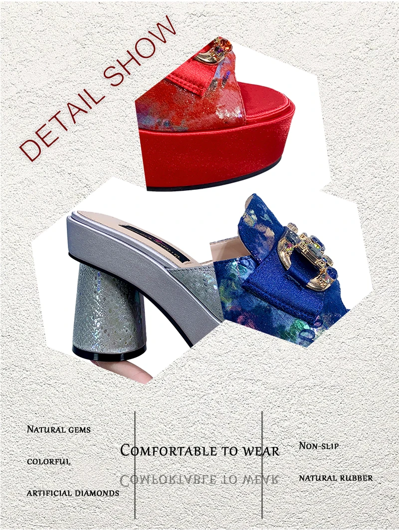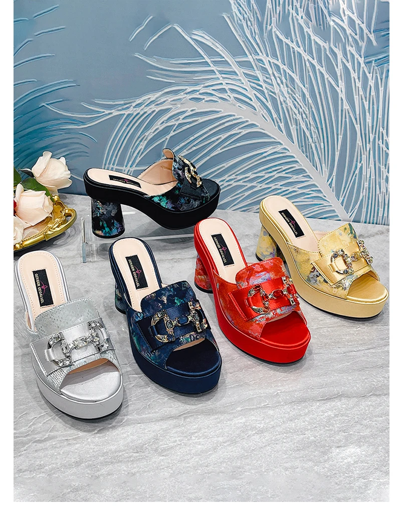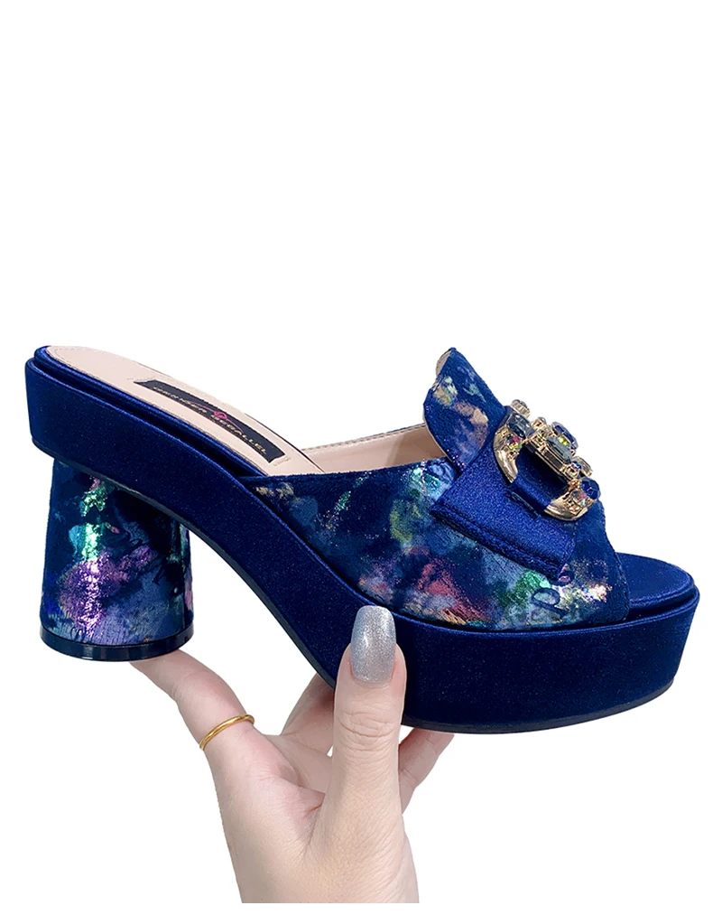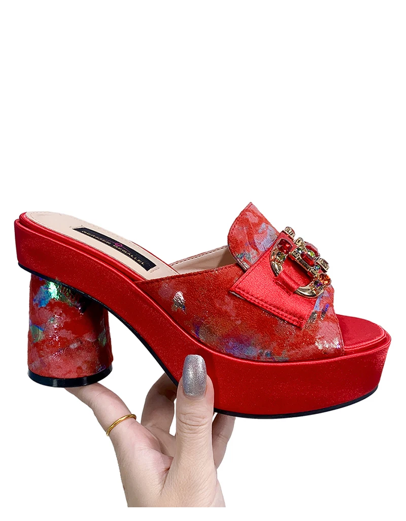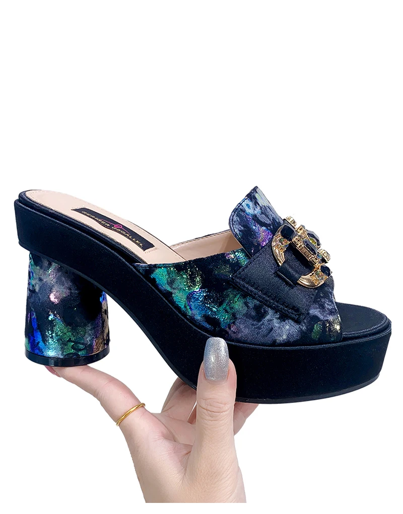 Victoria’s Vouge Wedding Party High Heels Bag Set Bohemian Embroidery Pattern Original Design Women Shoes Bright Sparkling Gemstone Diamond Mules