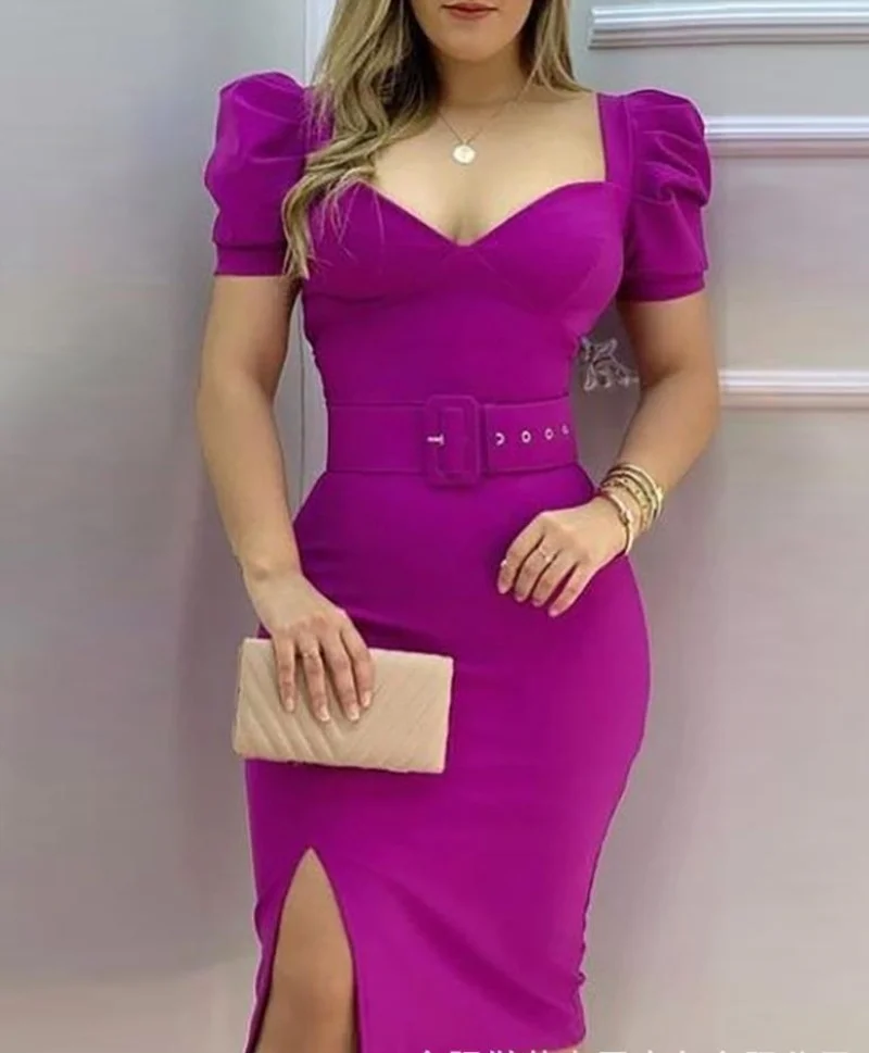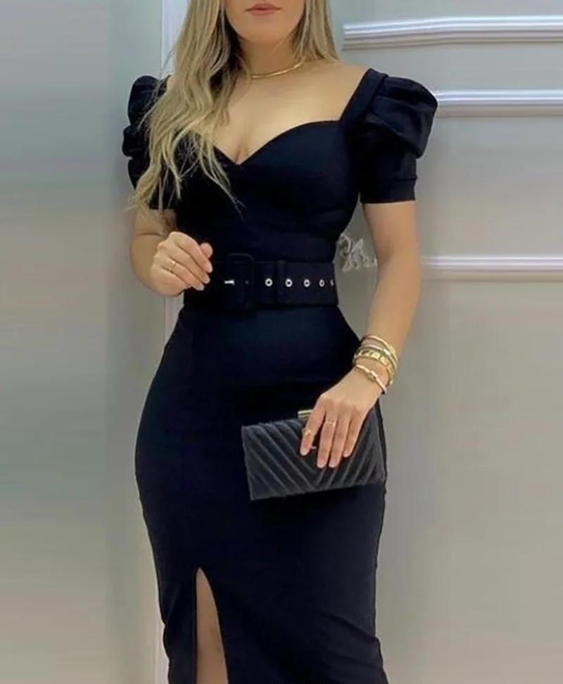 The puffy sleeves add a playful element to the dress, making it a standout piece in any wardrobe.