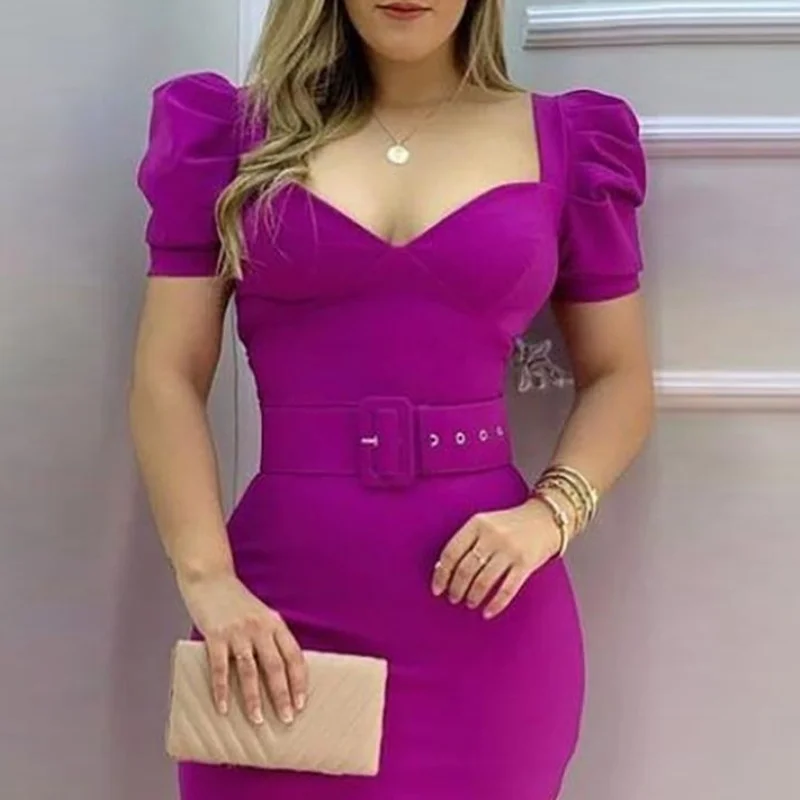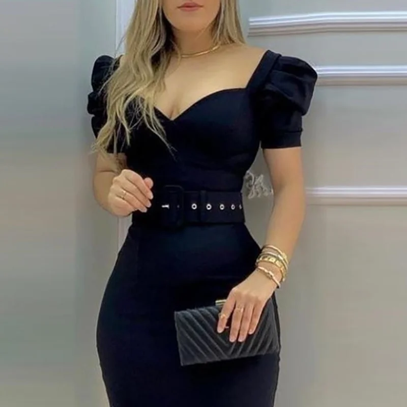 The square neckline adds a touch of sophistication, making this dress suitable for various occasions from parties to weddings.