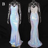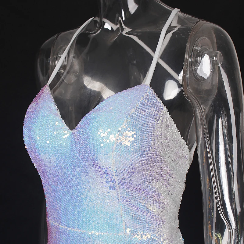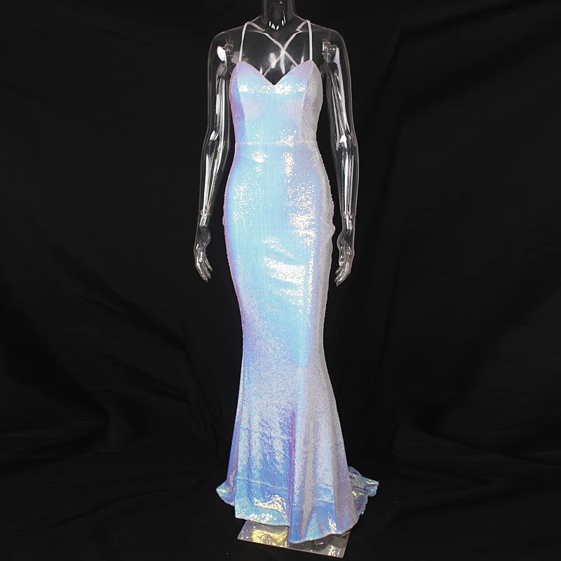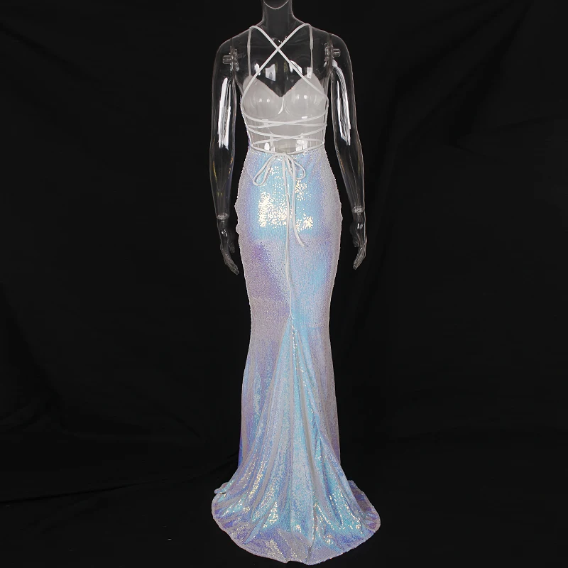 victoria’svogue 2021 White Shiny Sequined Maxi Dress Split Front Cross Strapes Backless Party Dress Evening Long Gown