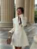 Victoria’s Vogue White Single Breasted A-line Mini Dress Women Elegant Solid Color Waist Pleated Short Dresses Daily Chic Evening Dinner Gowns