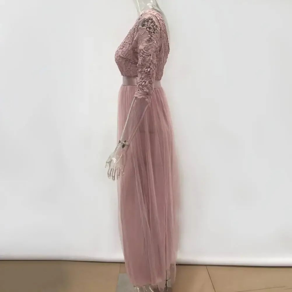 Victoria’s Vogue Women Maxi Dress Lace Flower Embroidery Pleated Floor Length Women Chiffon Long Dress Elegant Evening Gown Prom Party Dresses