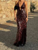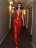 Victoria’s Vogue Women Sequin Sling Maxi Dress V-neck Solid Backless High Waist Sleeveless Dresses 2025 Fashion New Summer Lady Party Robes