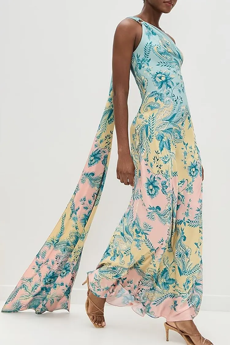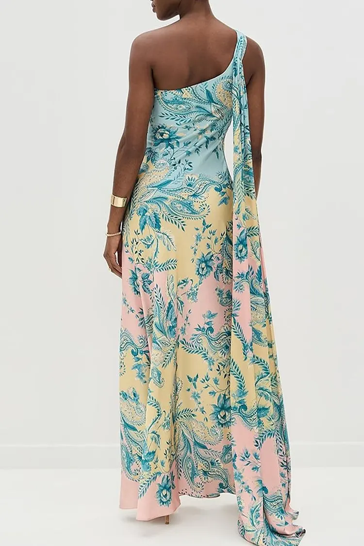Victoria’s Vogue Women Sexy Swimsuit With Long Skirt Oblique Shoulder Printed Dress Push Up Swimwear Female Bathing Suit Slimming Beachwear
