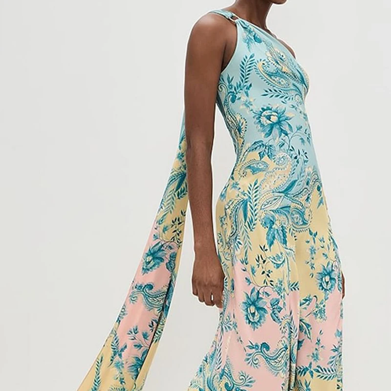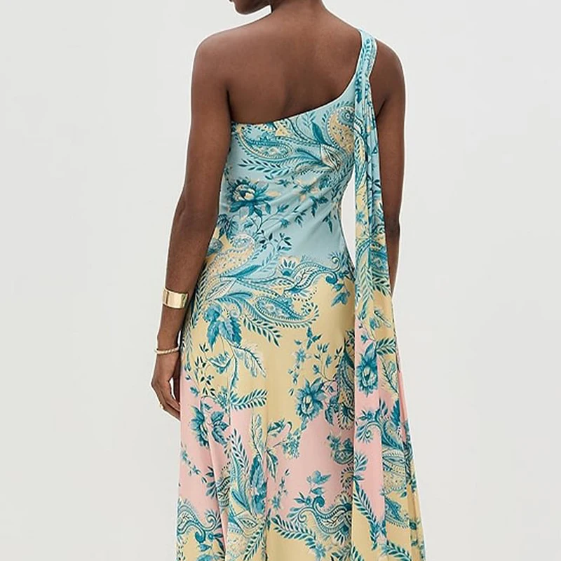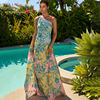 Victoria’s Vogue Women Sexy Swimsuit With Long Skirt Oblique Shoulder Printed Dress Push Up Swimwear Female Bathing Suit Slimming Beachwear