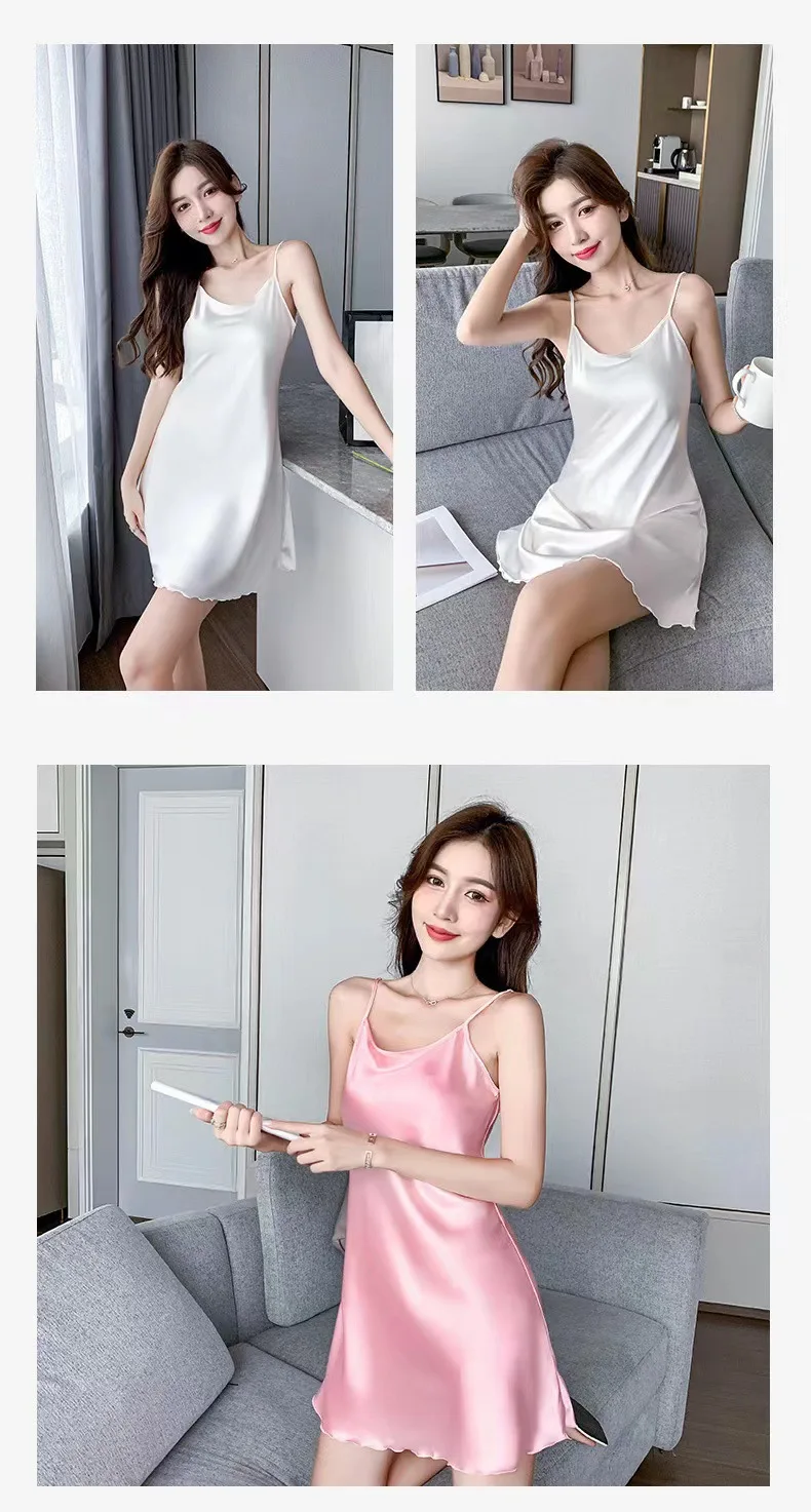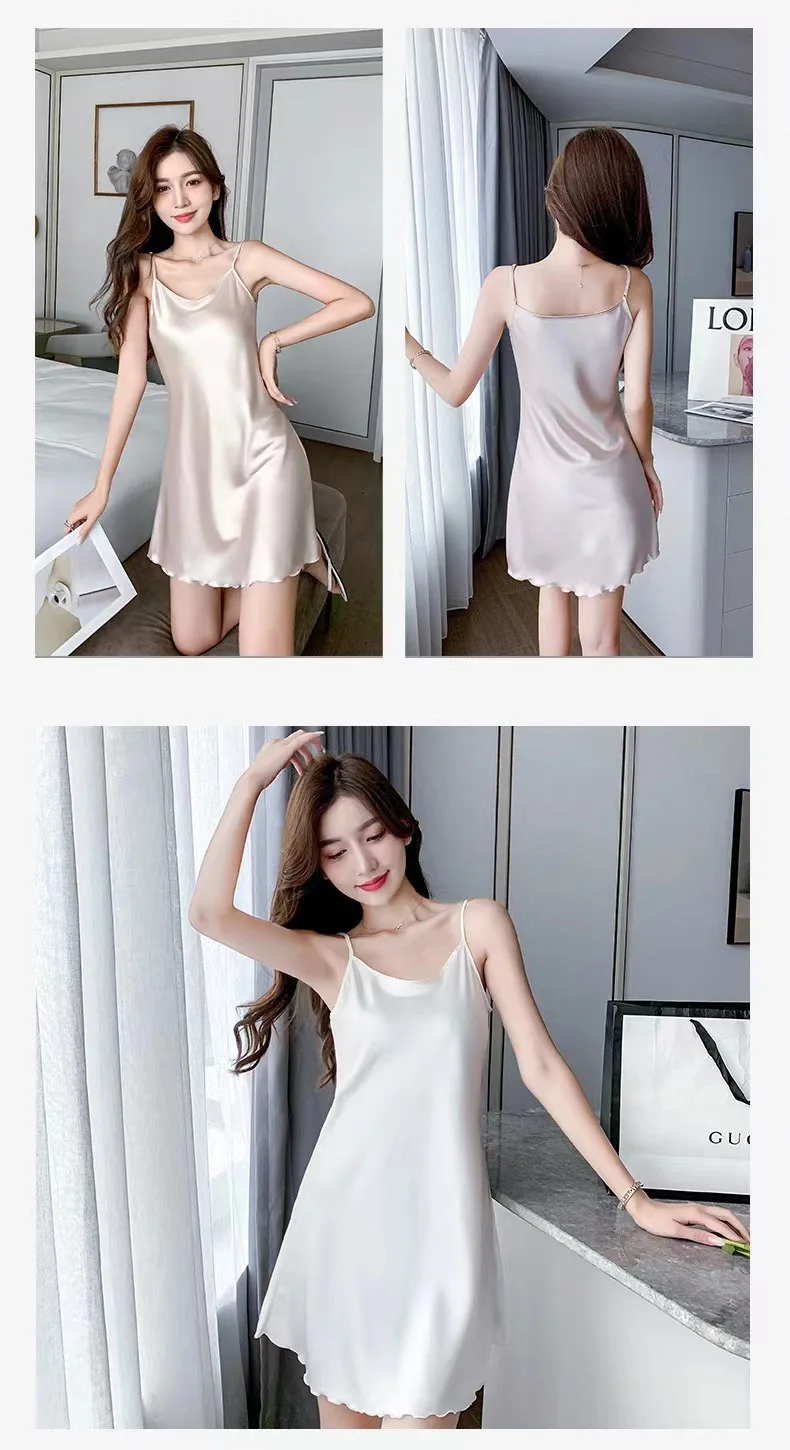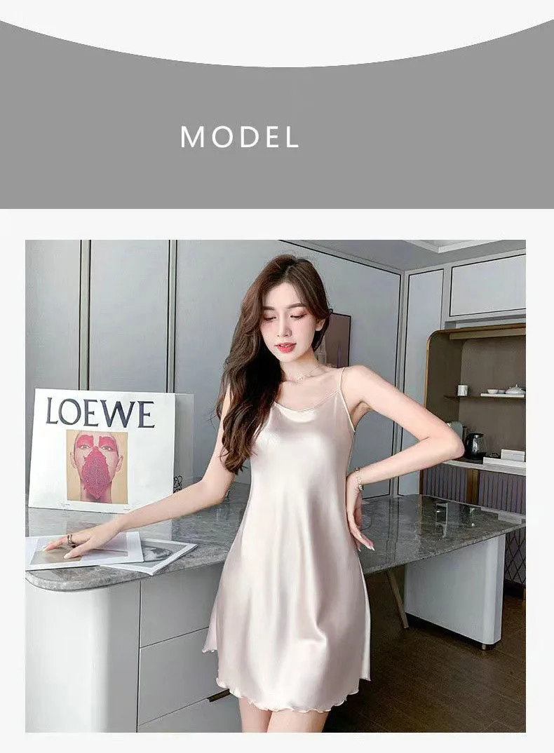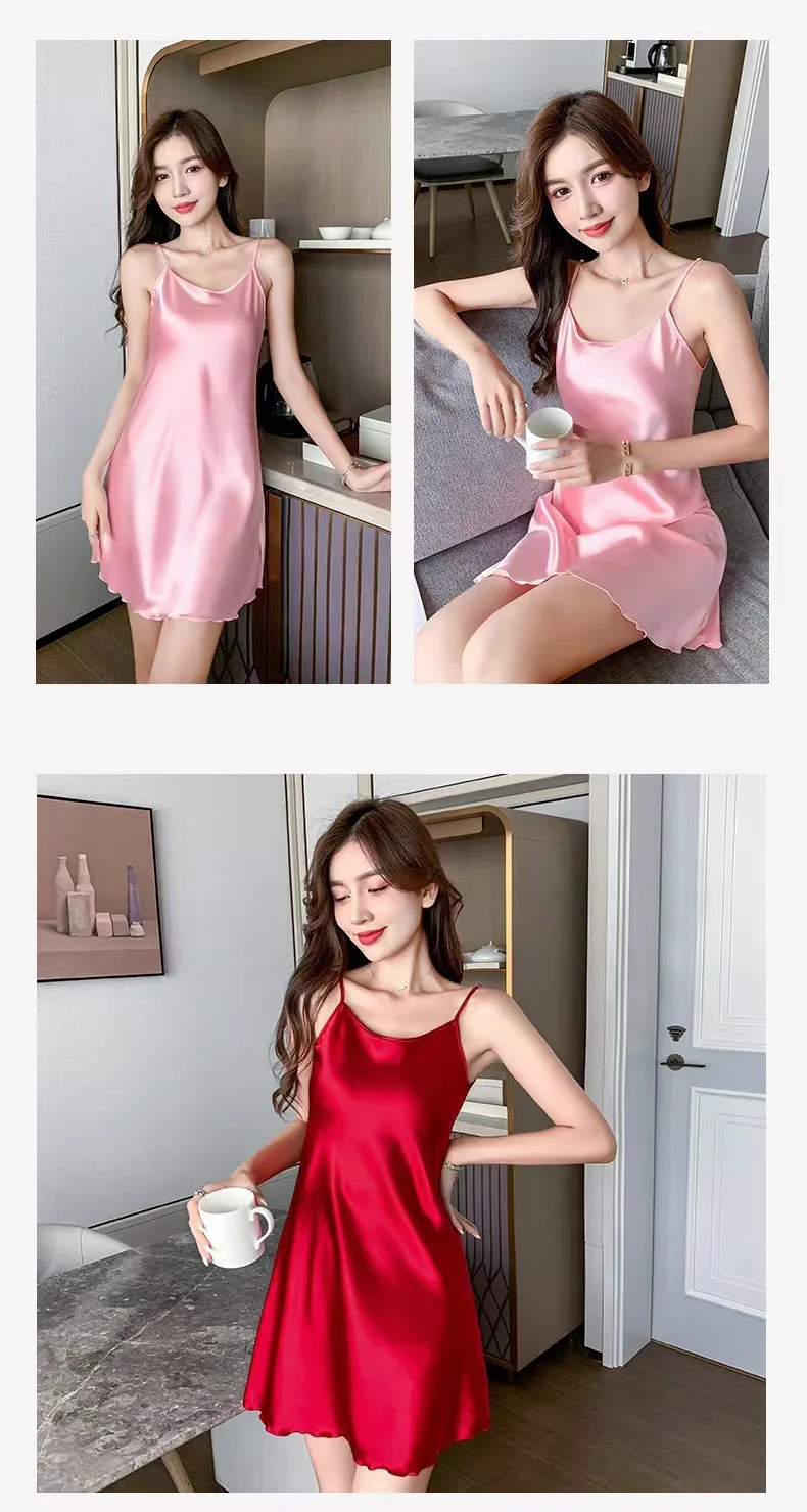 Victoria’s Vogue Women Silk Nightgowns Sexy Sleepwear Sleeping Dress Summer Pijamas Backless Slip dress lounge-wear Night Dress Ladies Sleepwear