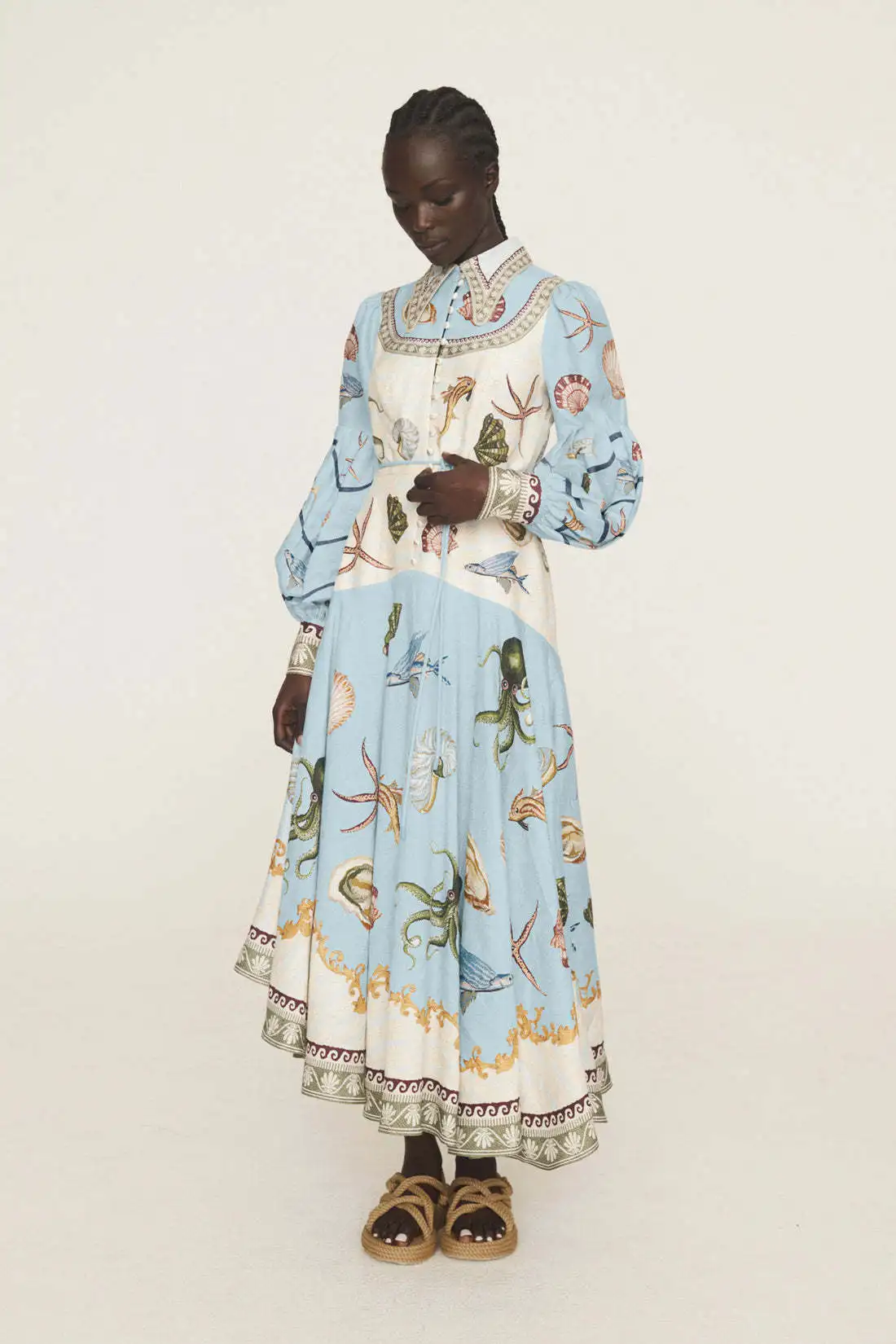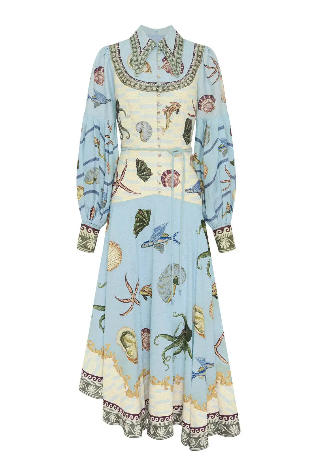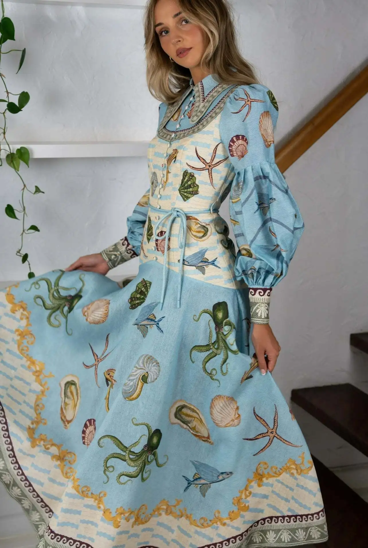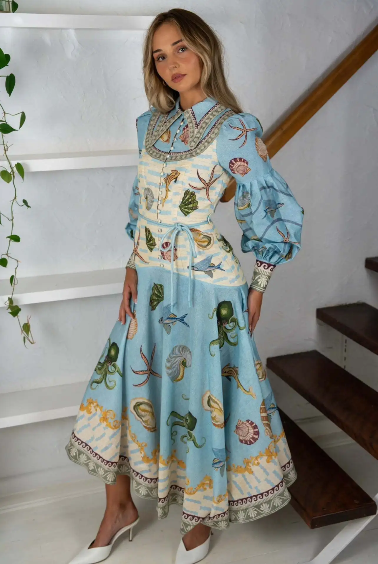 Victoria’s Vogue Women Vintage Floral Printed Shirt Collar Dresses Puff Sleeve Single Breasted Spring Summer Long A Line Female Elegant Vestidos