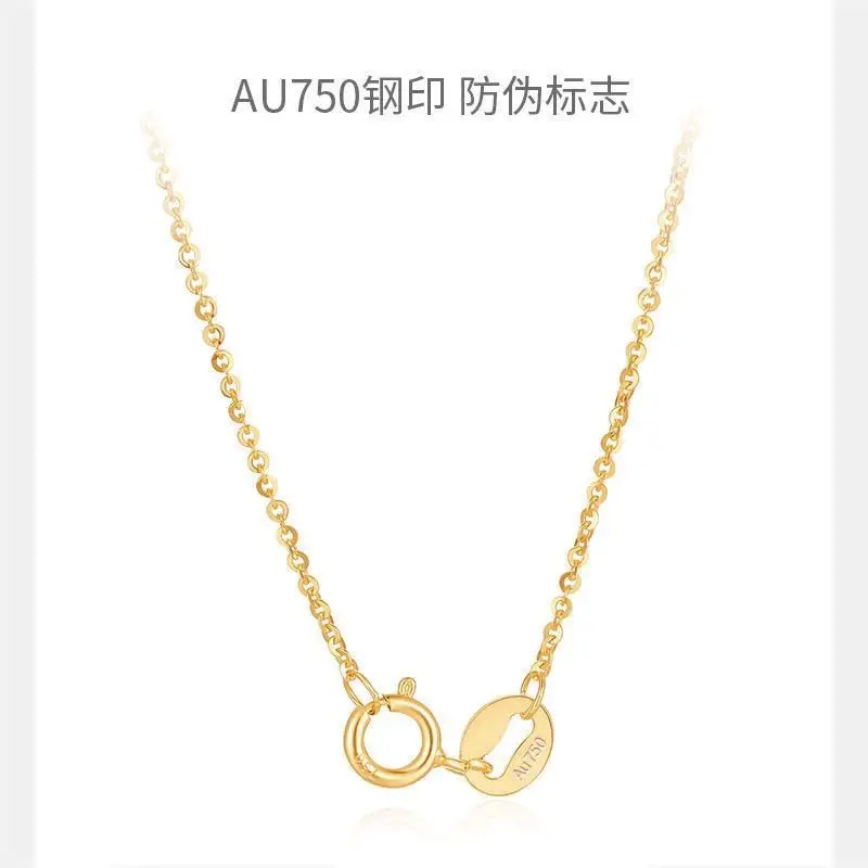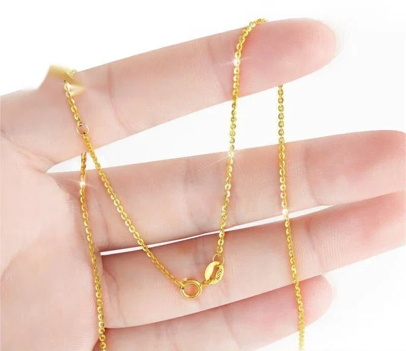 Victoria’s Vogue Women’s 18k Gold Necklace AU750 Delicate Clavicle Chain with a Sparkling O-Link Design