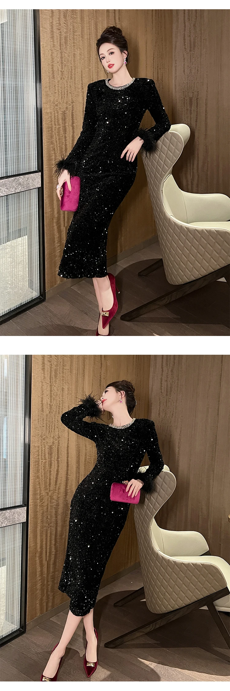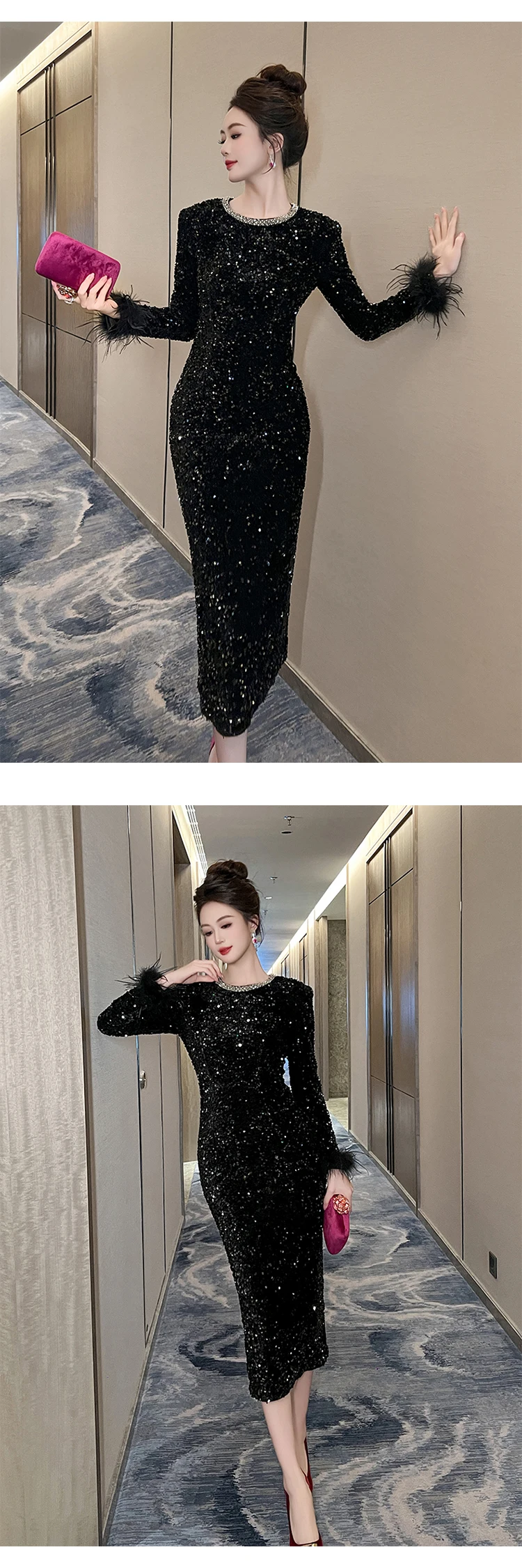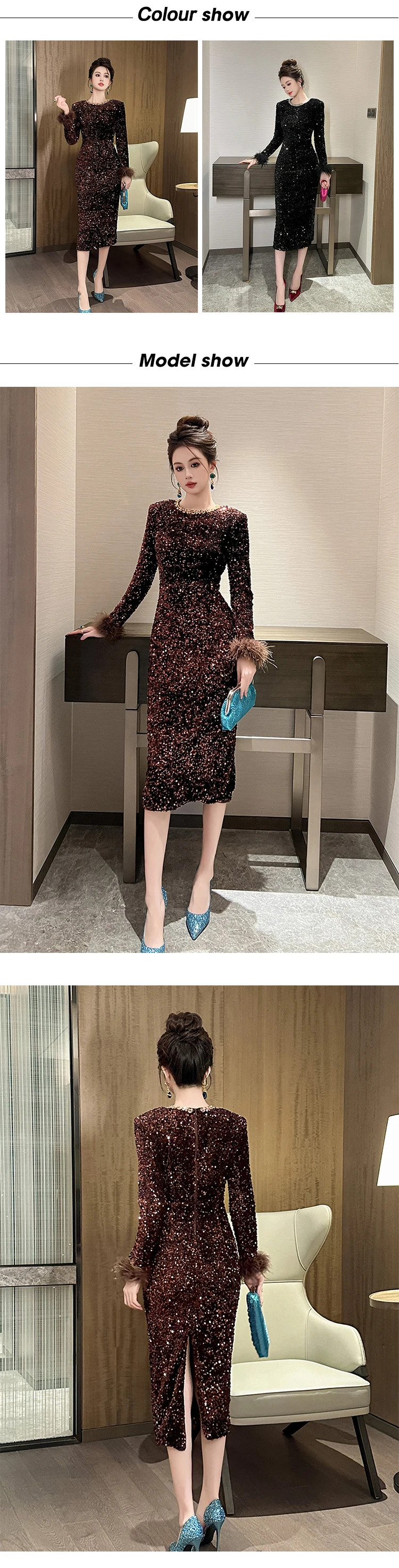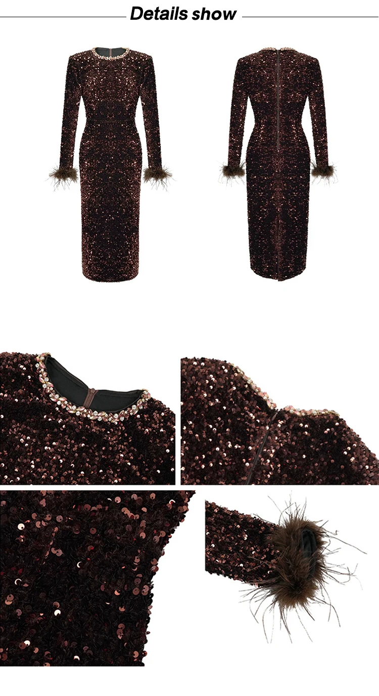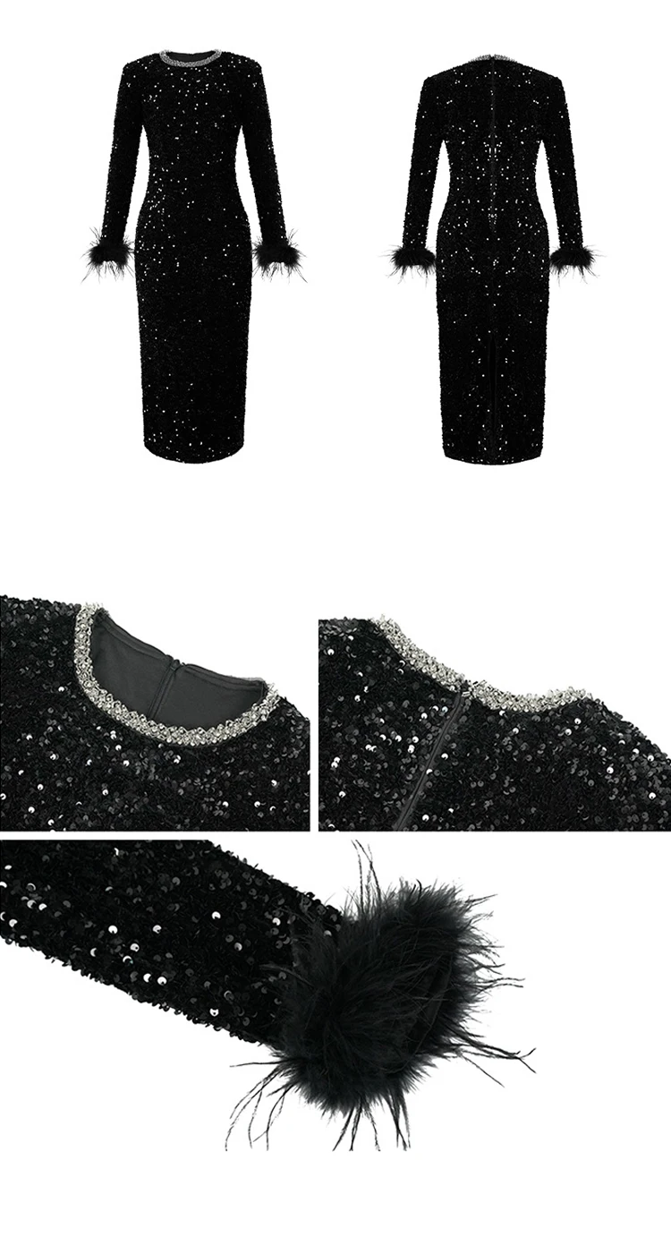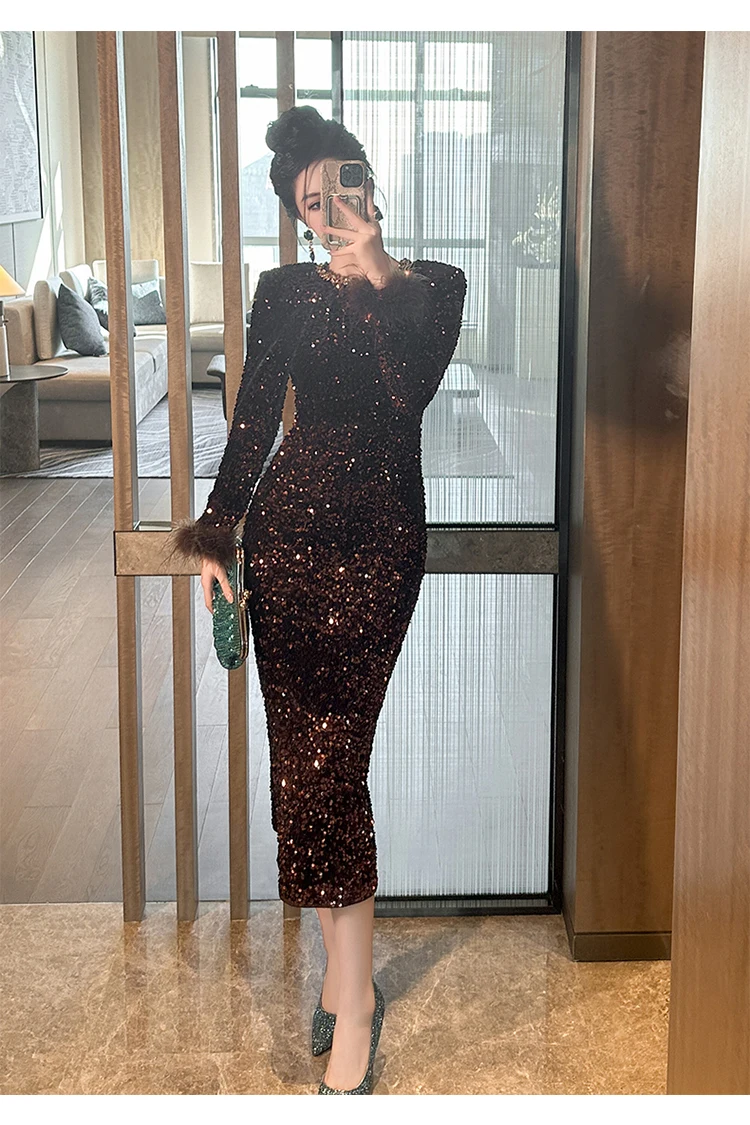 Victoria’s Vogue Women’s Clothing Luxury Retro Prom Dress Female Elegant Elastic Velvet Fur Long Sleeve Bodyocn Robe Lady Cocktail Party Vestidos