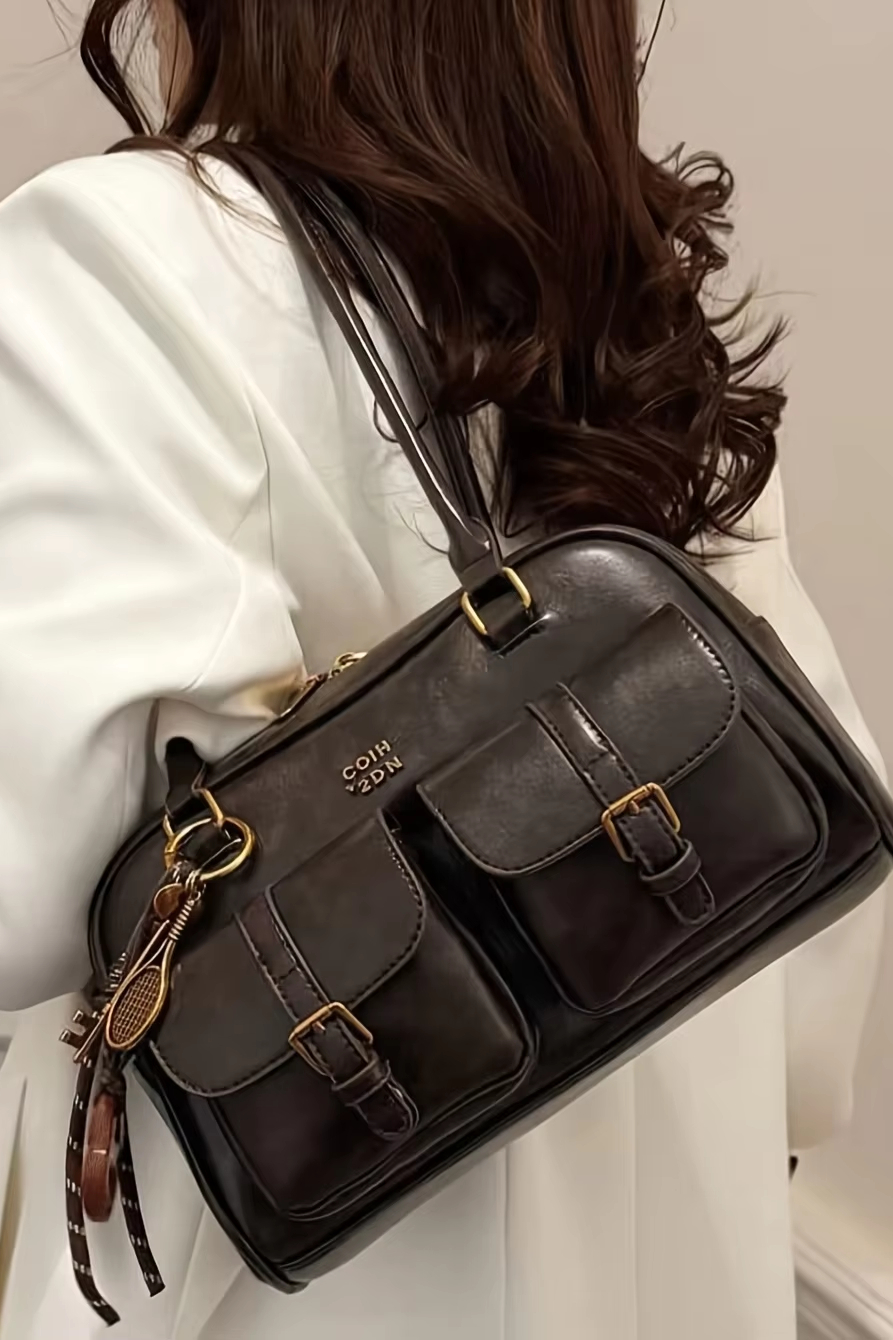 Victoria’s Vogue Women’s Coffee Brown Multi-Pocket Handbag Shoulder Bag, Stylish Versatile Letter Crossbody Purse for Travel Work Shopping Dates