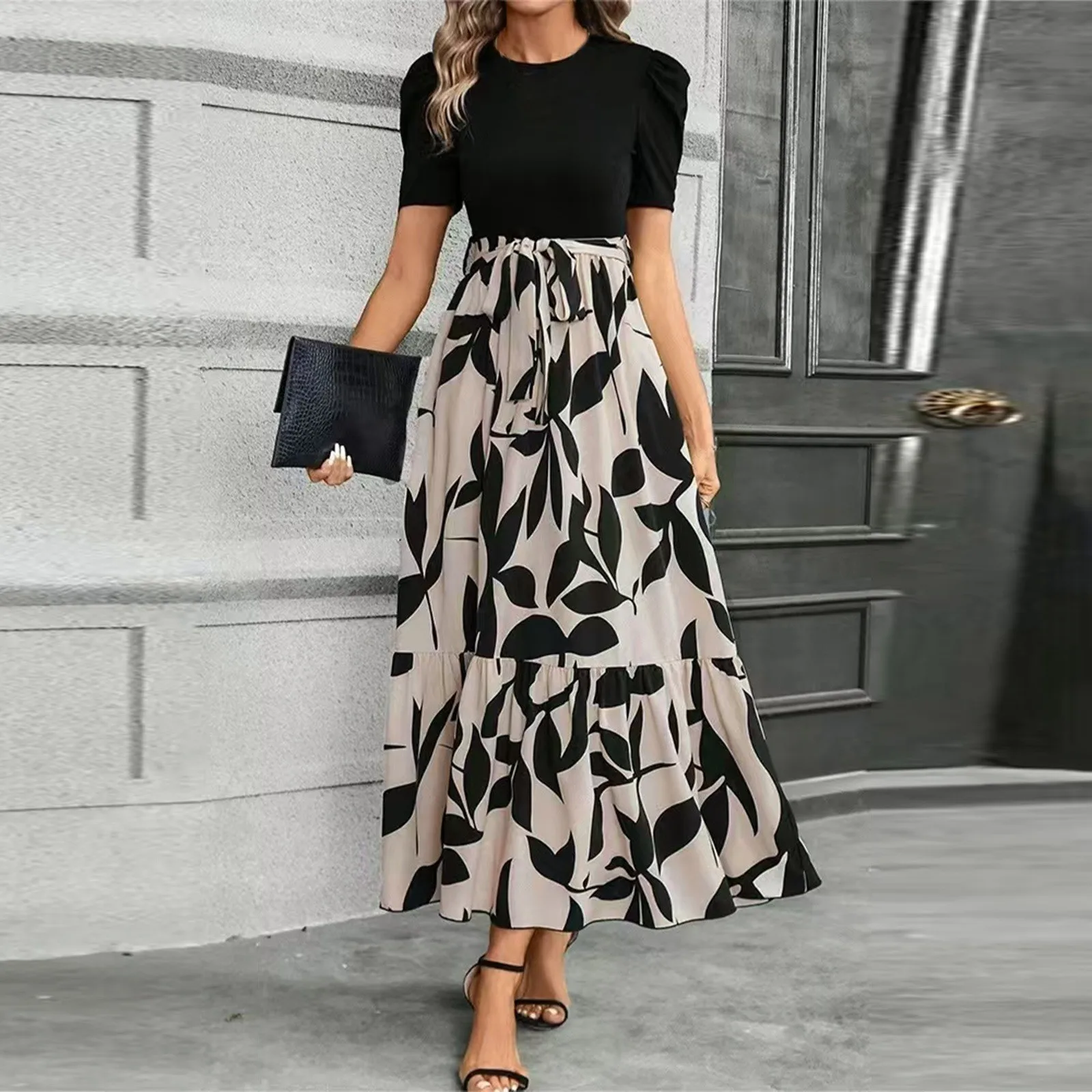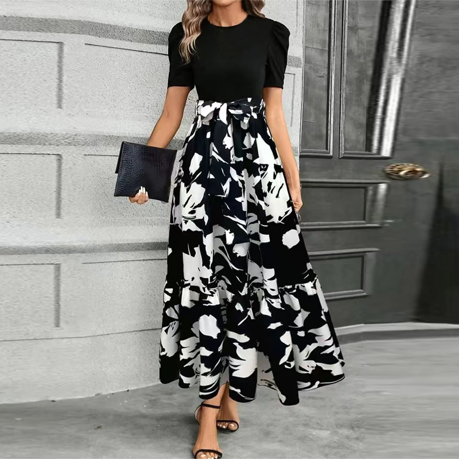 Victoria’s Vogue Women’s Dresses High Waist Floral Print Dress Elegant Fashionable Maxi Sundress Casual Vintage Style For Spring Summer