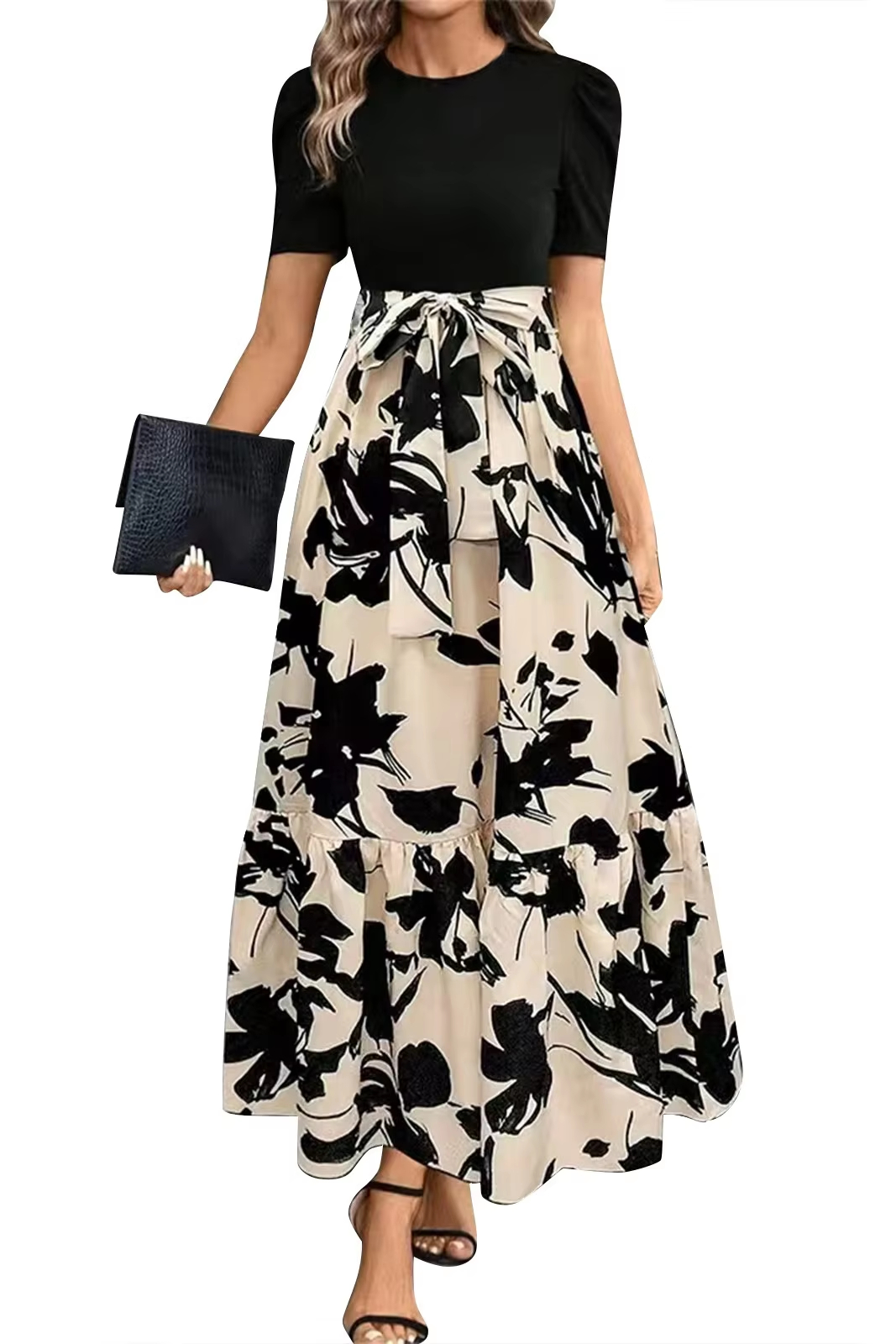 Victoria’s Vogue Women’s Dresses High Waist Floral Print Dress Elegant Fashionable Maxi Sundress Casual Vintage Style For Spring Summer