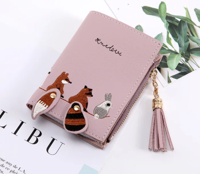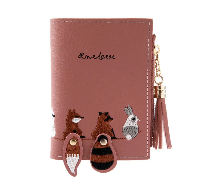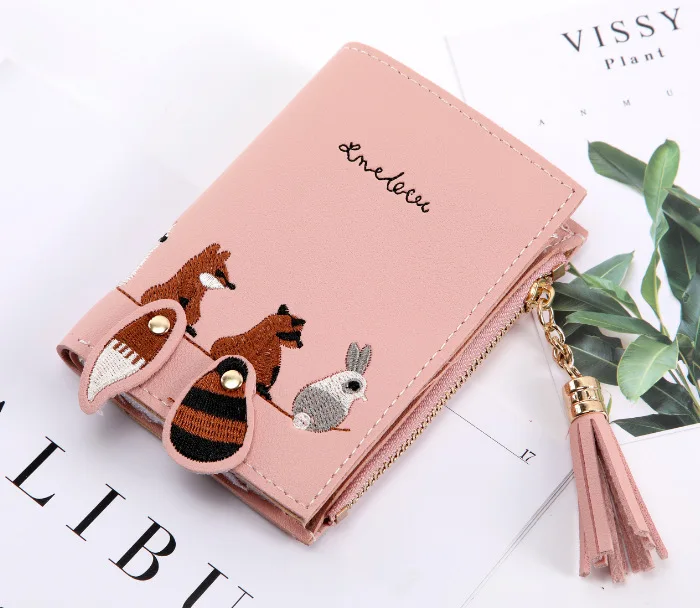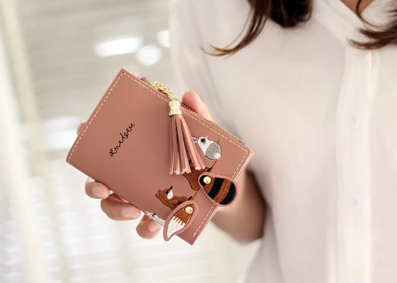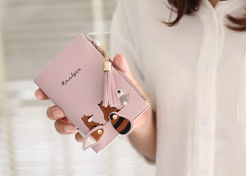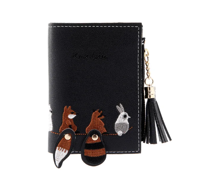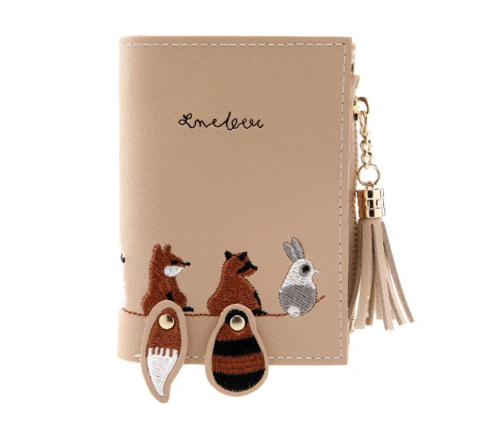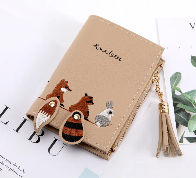 victoria’svogue Women’s Embroidery Thread Cute Short Cartoon Tassel Zipper Wallet