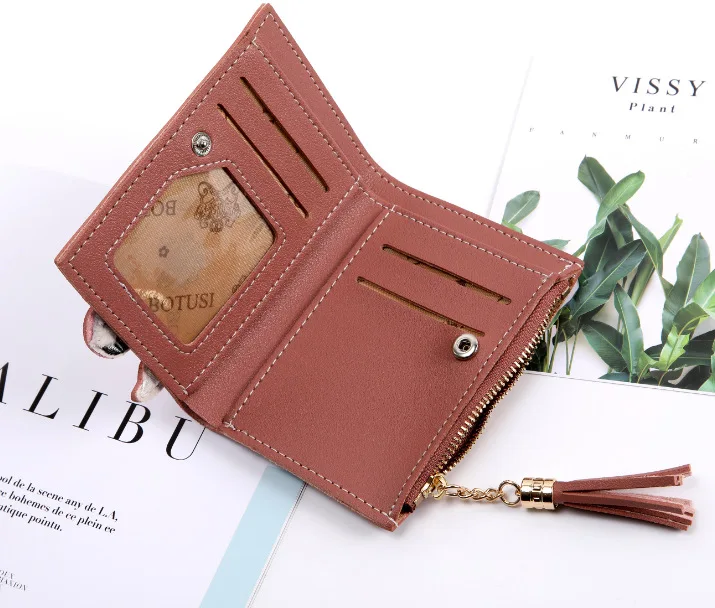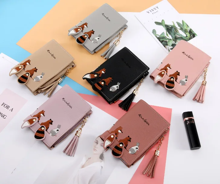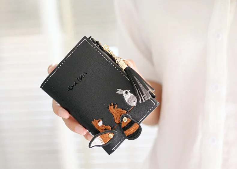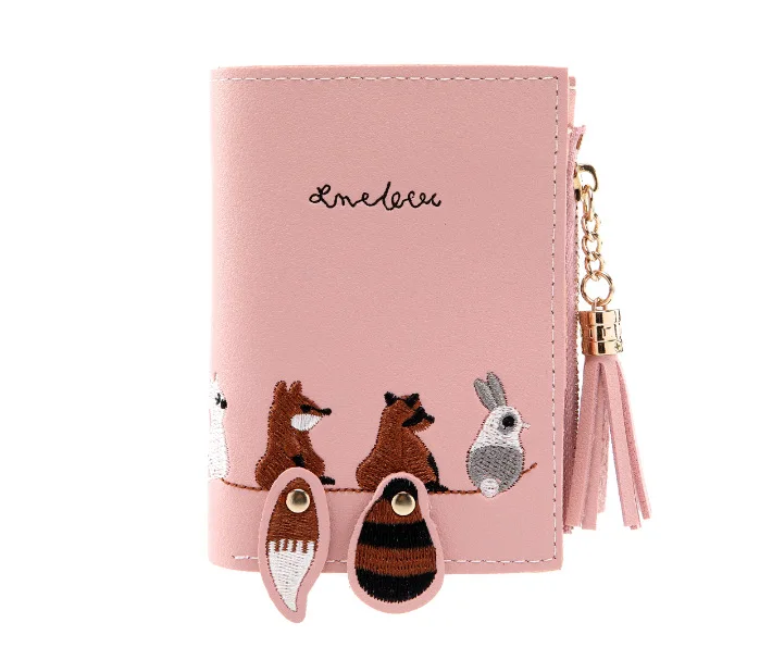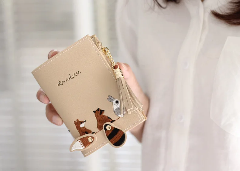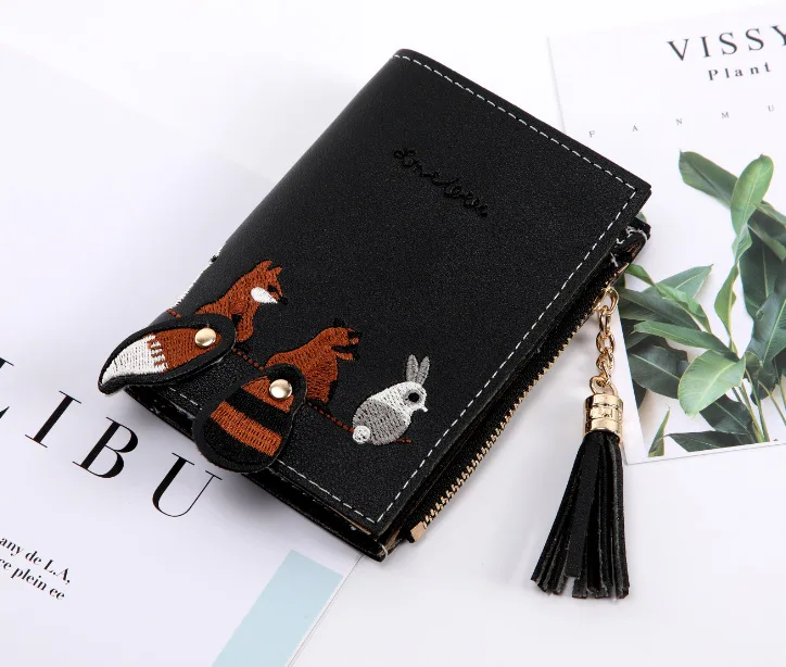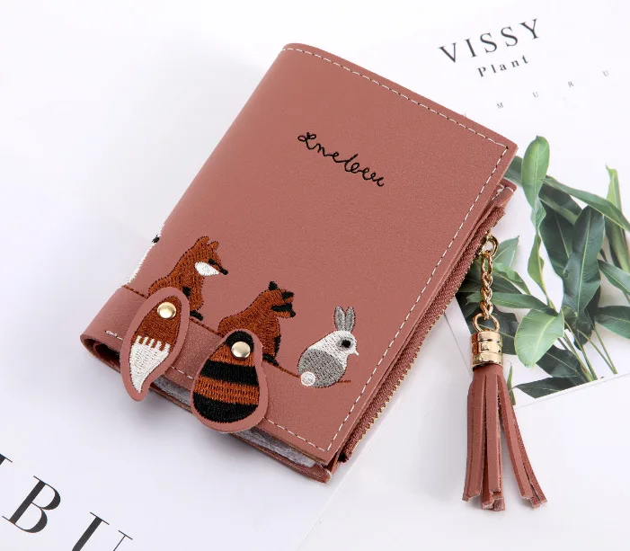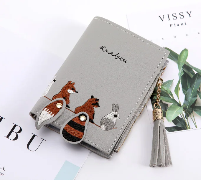 victoria’svogue Women’s Embroidery Thread Cute Short Cartoon Tassel Zipper Wallet