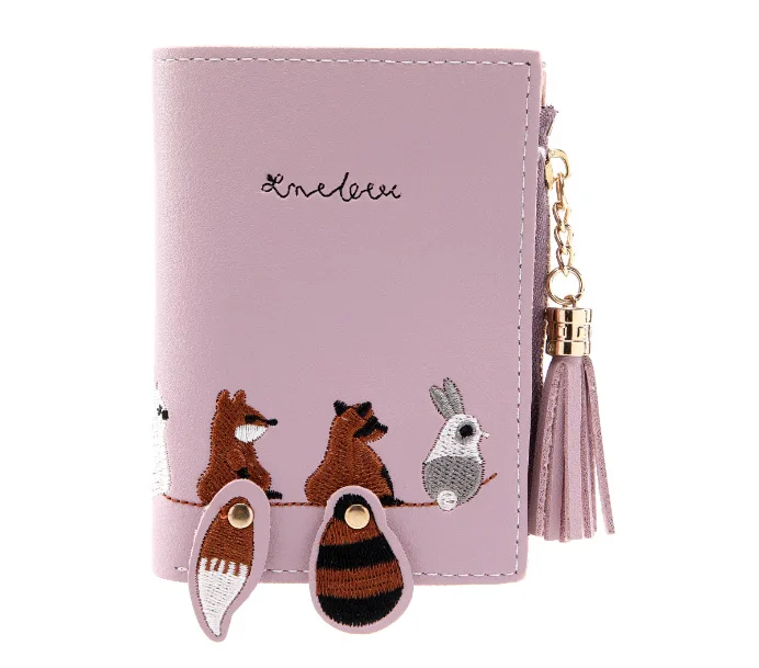 victoria’svogue Women’s Embroidery Thread Cute Short Cartoon Tassel Zipper Wallet