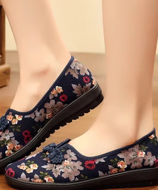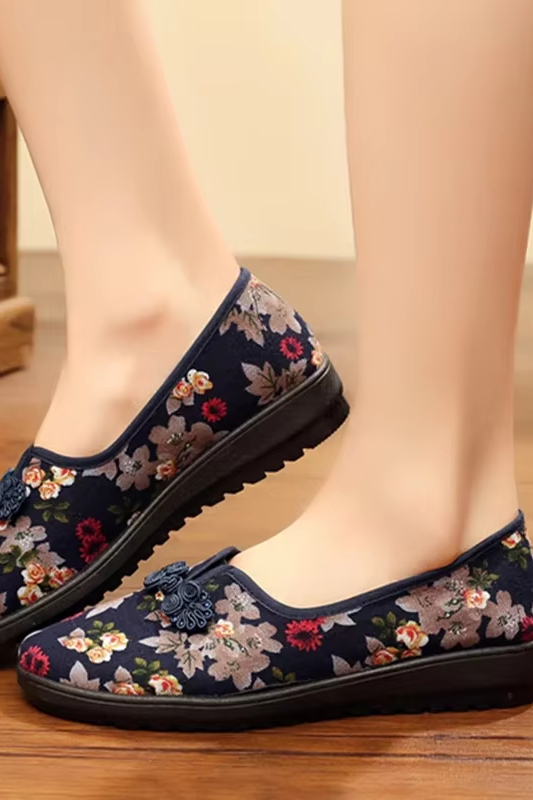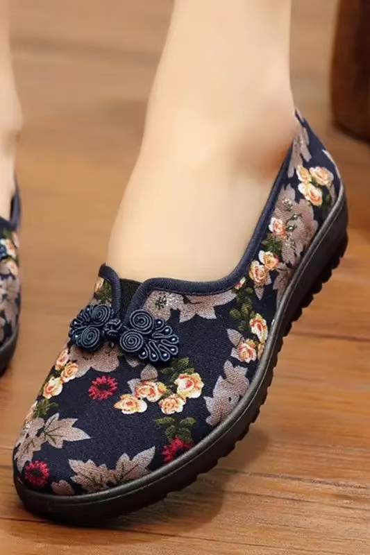 Victoria’s Vogue Women’s Ethnic Embroidered Flats Soft Bottom Non-Slip Middle-aged Flat Mom Shoes Female Old Beijing Cloth Shoes