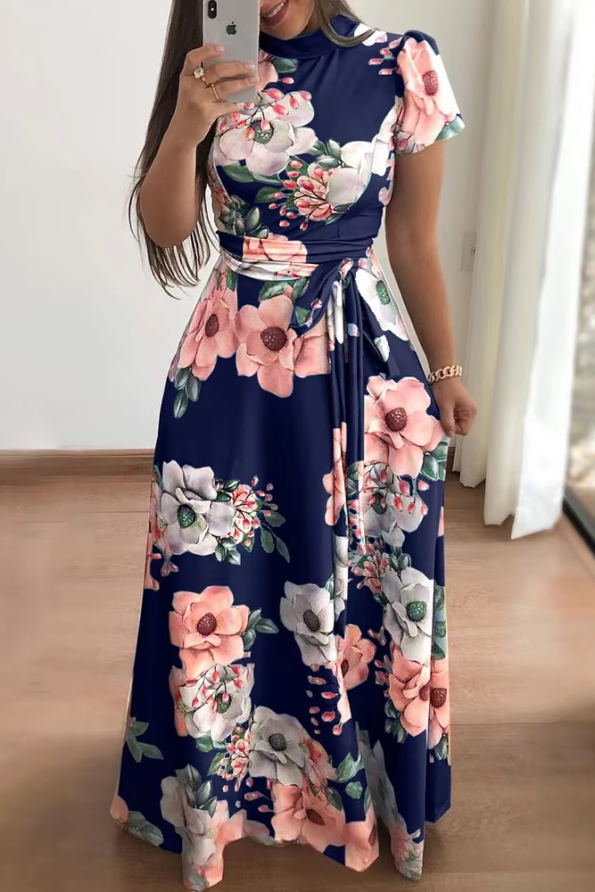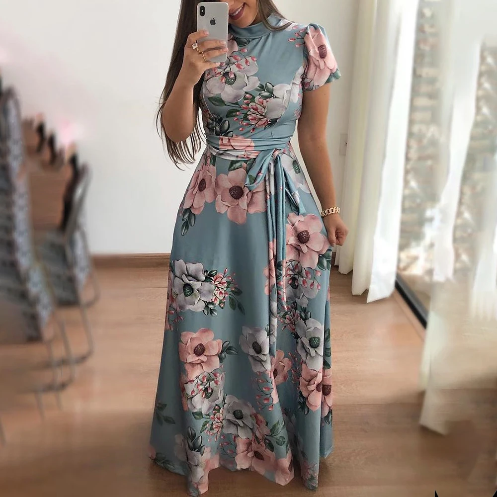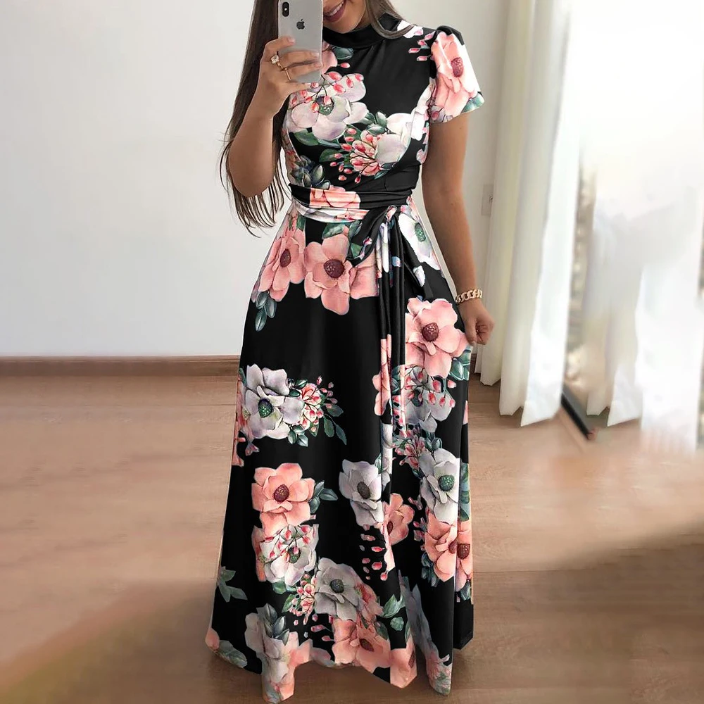 Victoria’s Vogue Women’s Floral Print Summer Dress – 2025 New Boho A-Line Swing Dress with Short Sleeves, High Waist Flowy Maxi Dress for Beach &