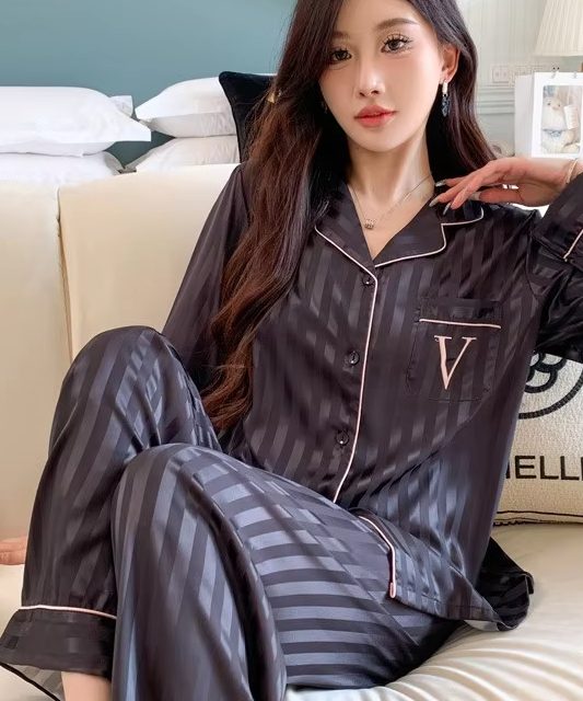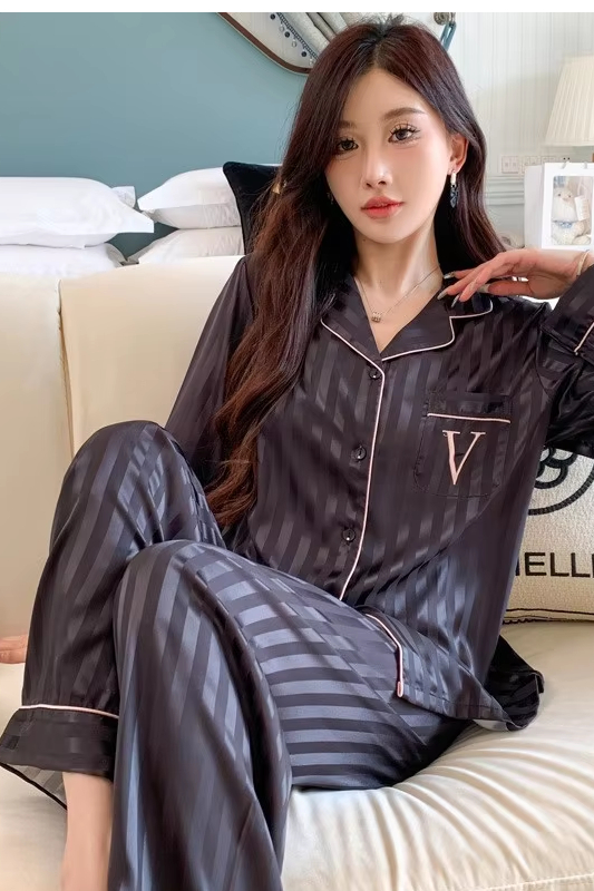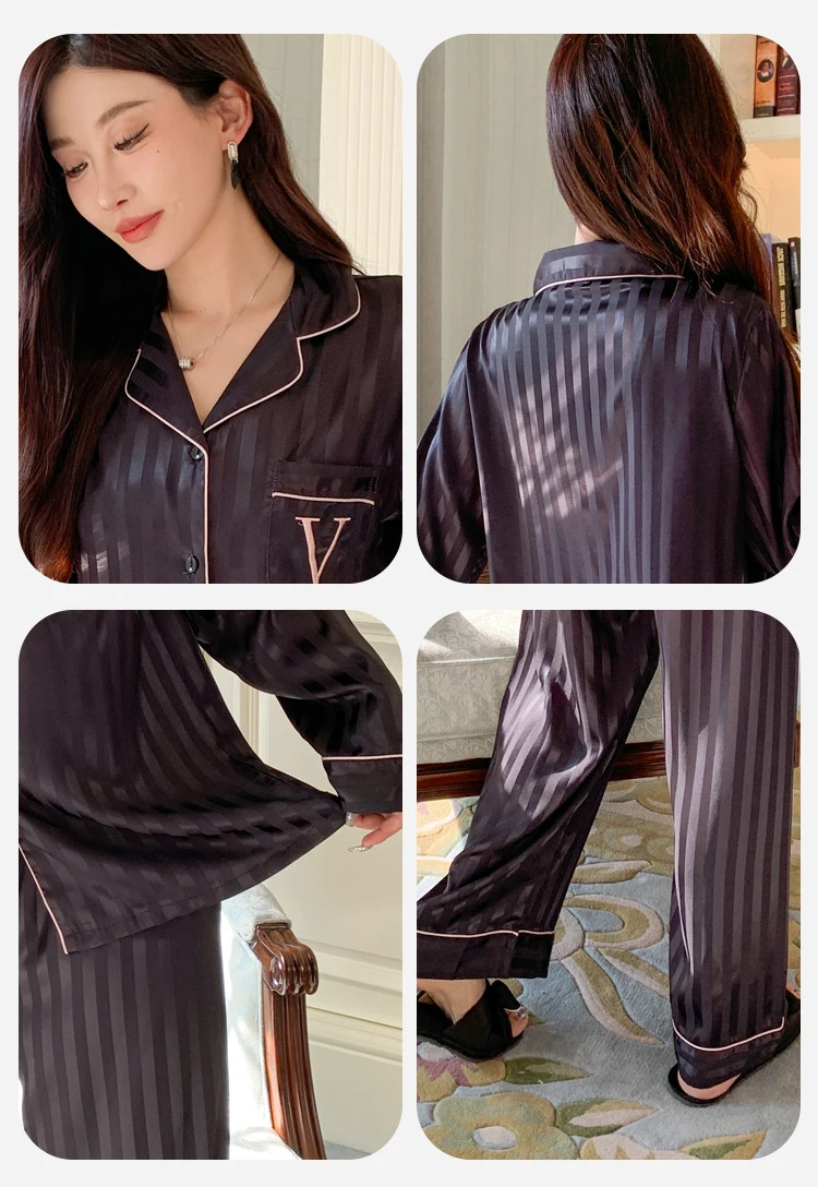 Victoria’s Vogue Women’s Ice Silk Pajama Set Long Sleeve Long Pants Lightweight Sleepwear for Spring And Autumn Comfortable Homewear Pj Set