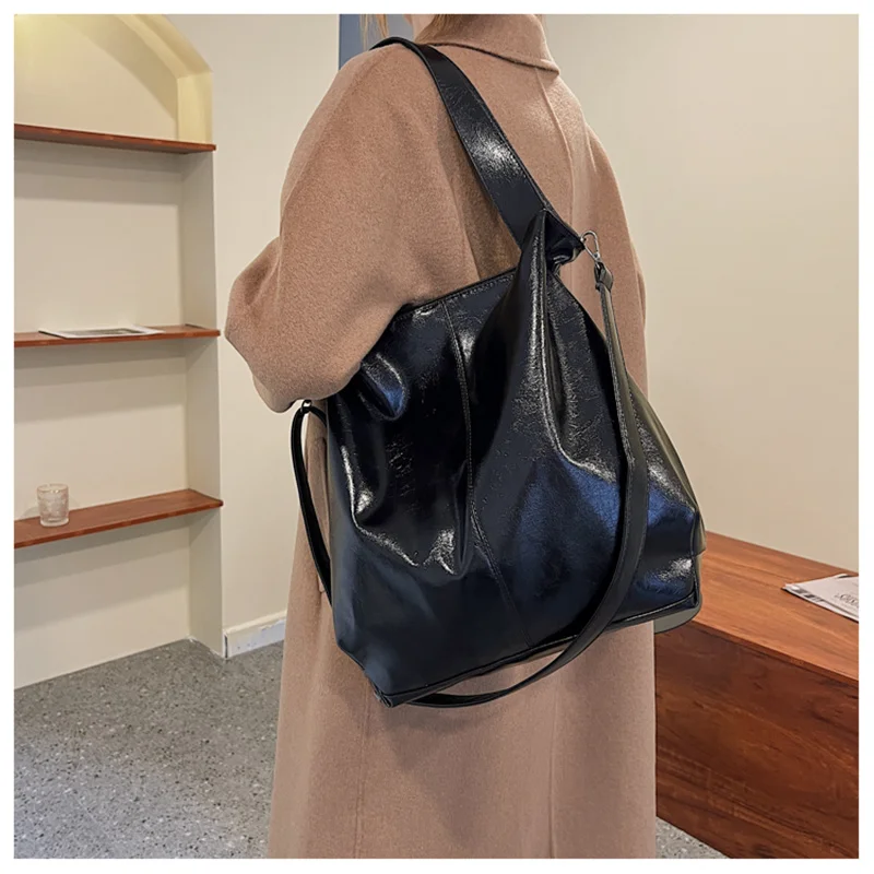 Vtoriasvogue Women’s Leather Hobo Handbag Large Capacity Female Totes Shoulder Bags for Ladies Big Bucket Bag Roomy Solid Color Crossbody Bag