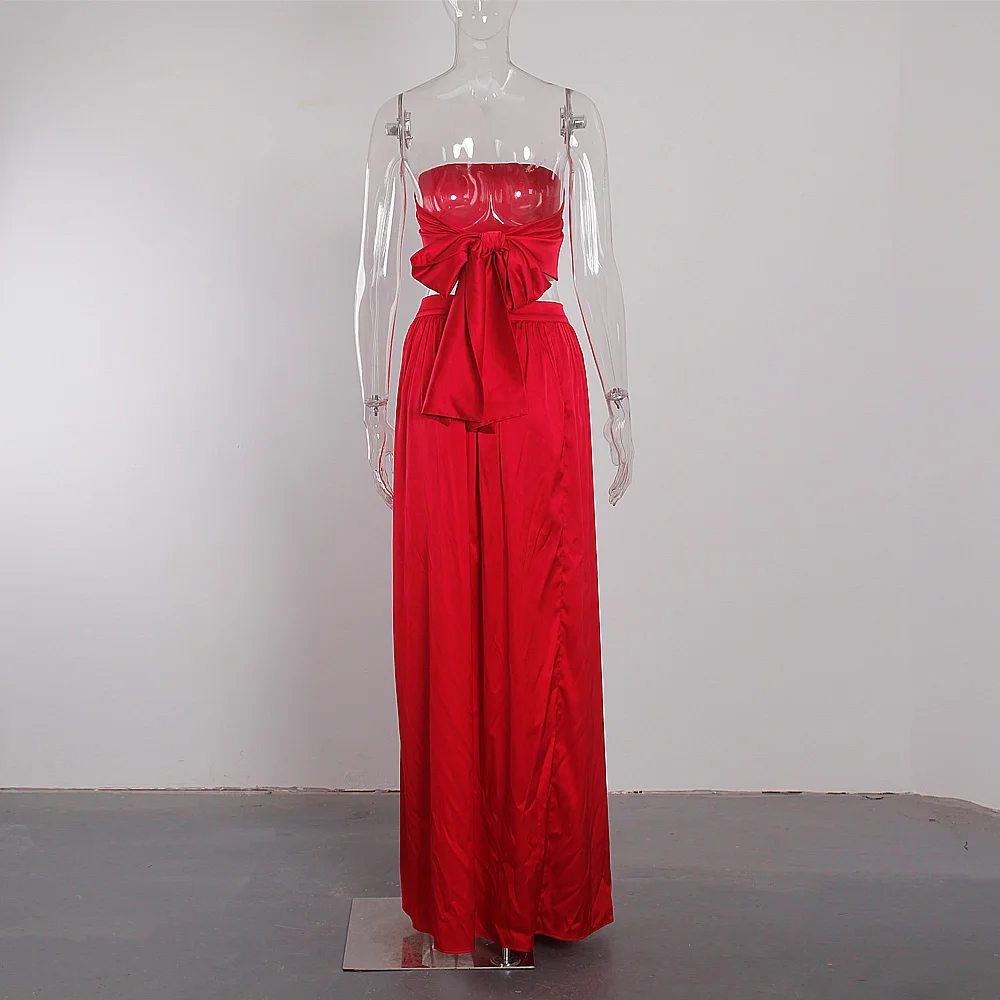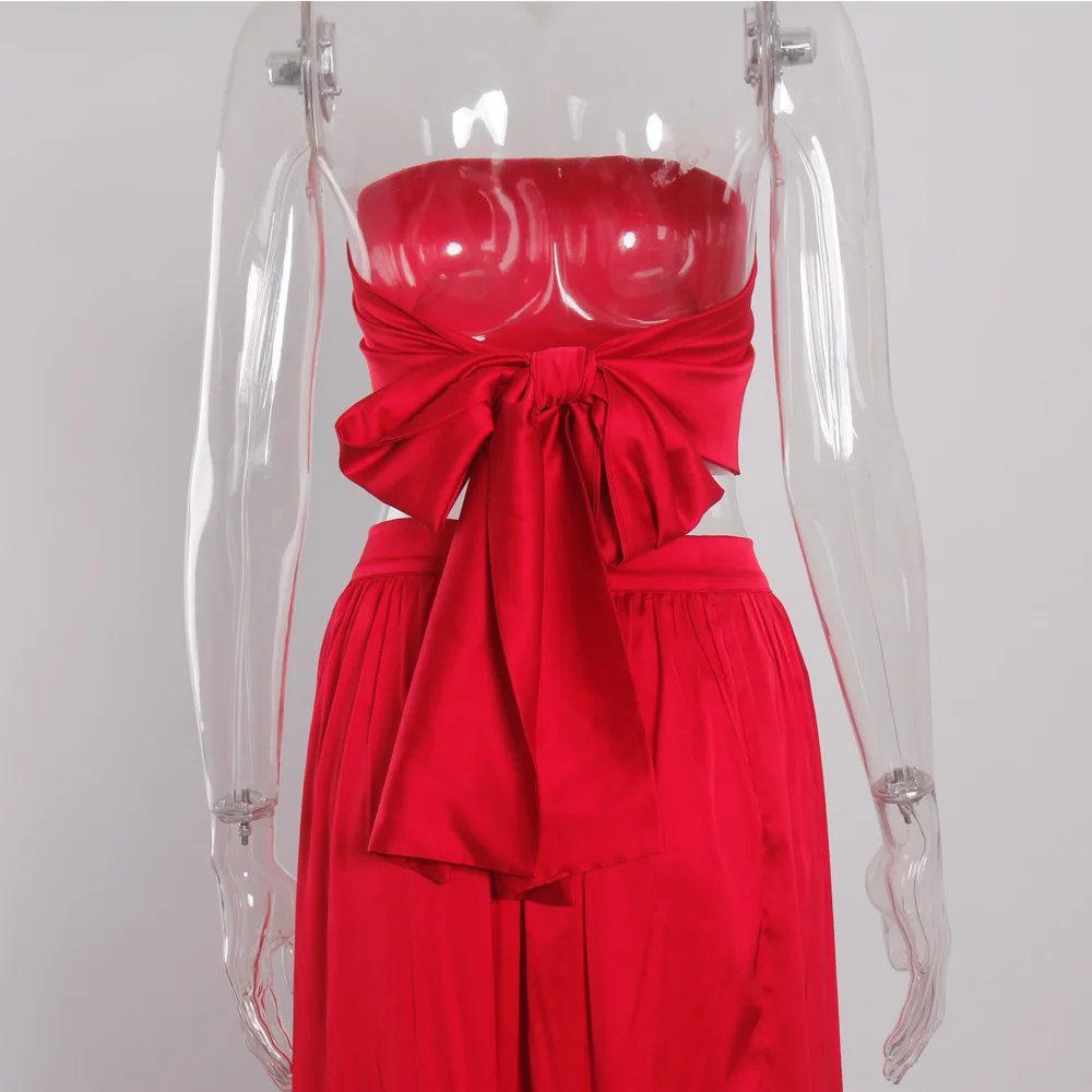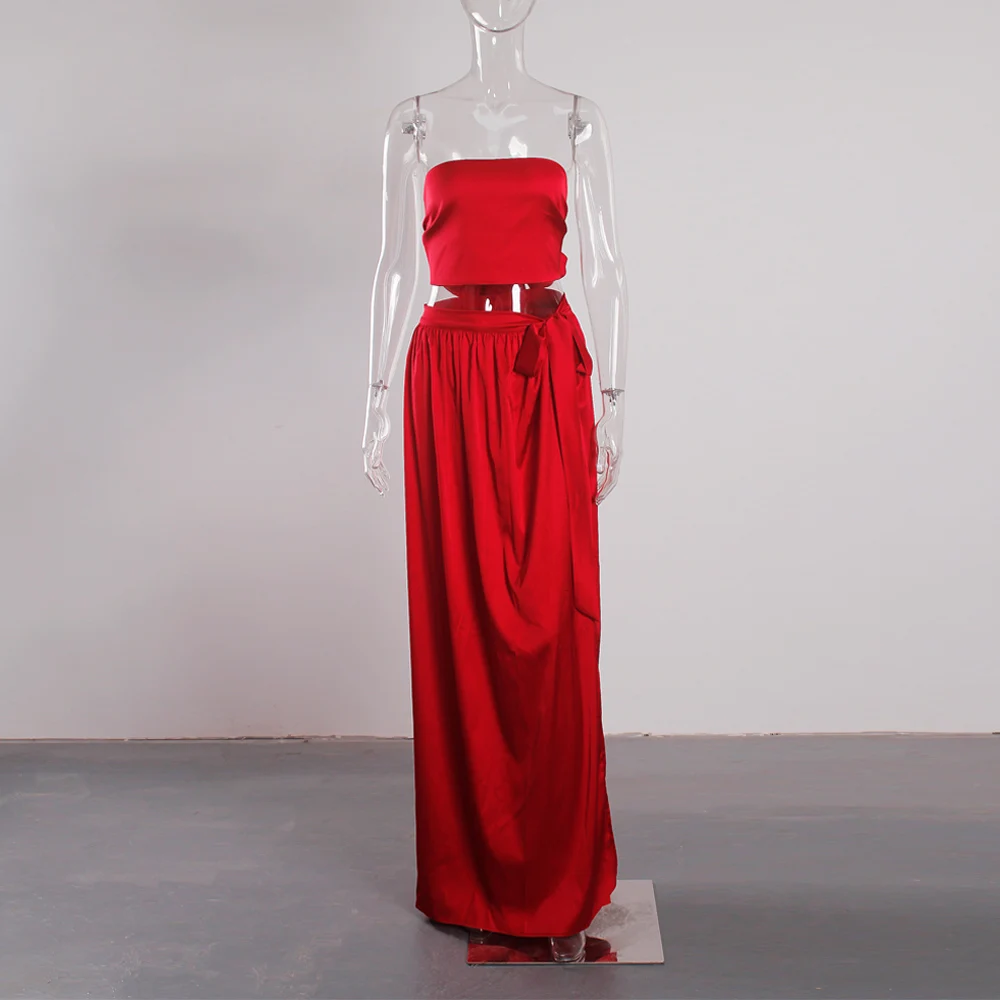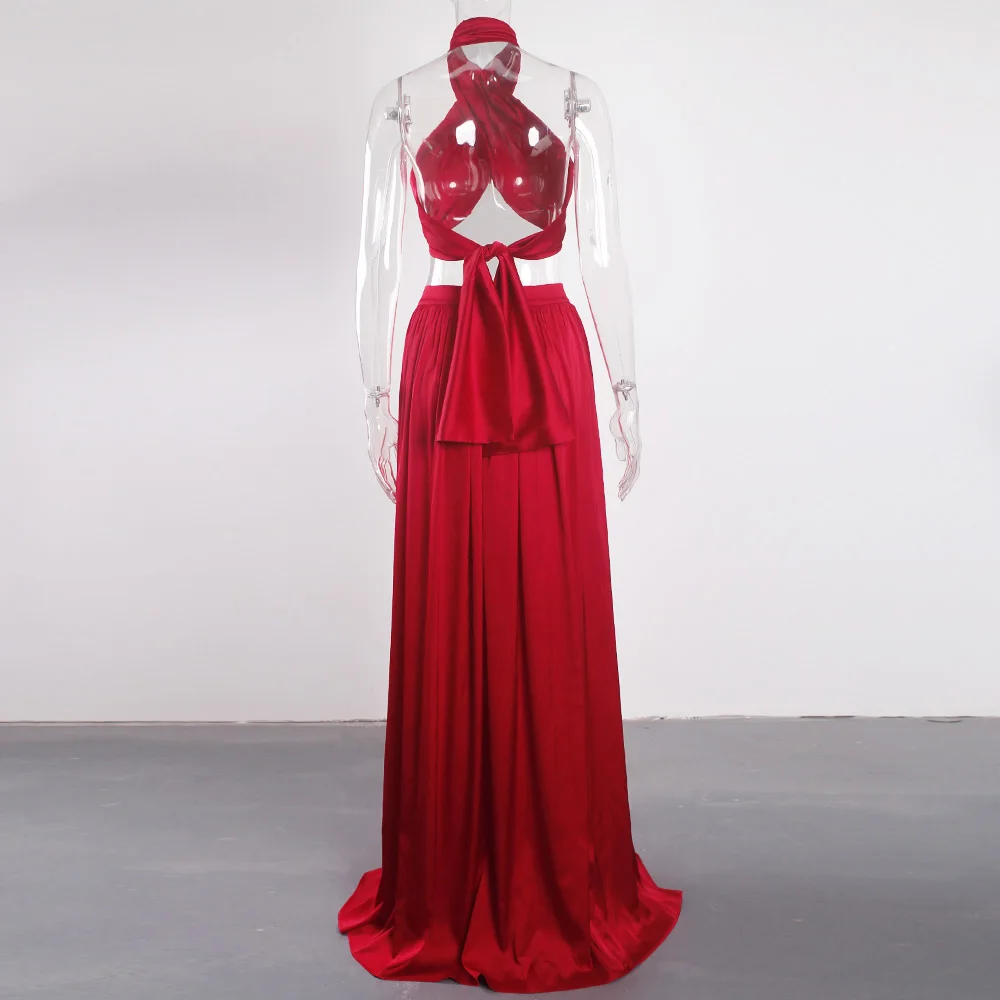 victoria’svogue 2021 Women’s Sexy Satin 2 Pieces Tie Up Set DIY Party Tops Lace Up Skirt High Slit Summer Beach Wear