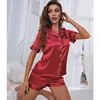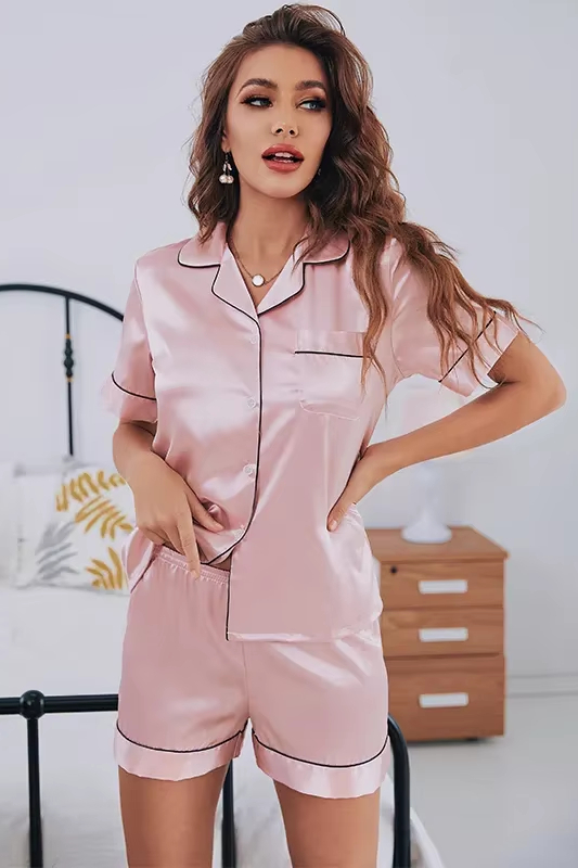 Womens Silk Satin Pajamas Set Short Sleeve Two-piece Pj Sets Sleepwear Loungewear Button-Down