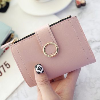 victoria’svogue Version Solid Color Short Buckle Ring Female Card Bag Clutch Purses and Handbags Wallet Women