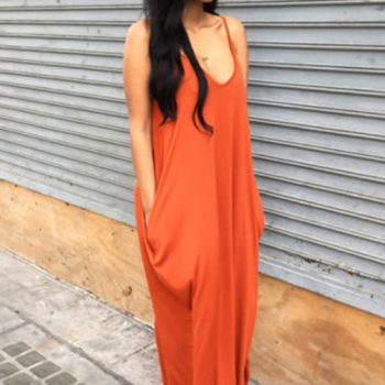 victoria’svogue Women Spaghetti Straps Dress Solid Deep V Neck Sleeveless Pockets Loose Casual Summer Beach Dresses Female Maxi Dress