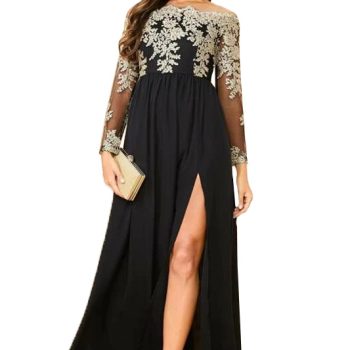 victoria’svogue 2021 Spring Lace Embroidery High Slit Maxi Party Dress Elegant Women Sexy Off Shoulder Sheer Mesh Long Sleeve Club Dress
