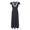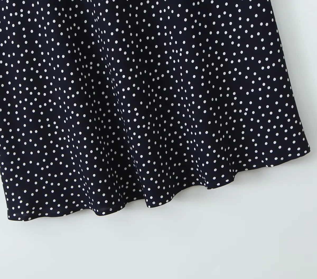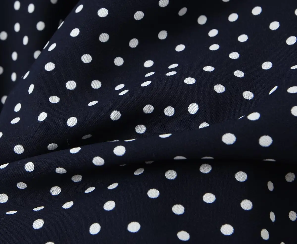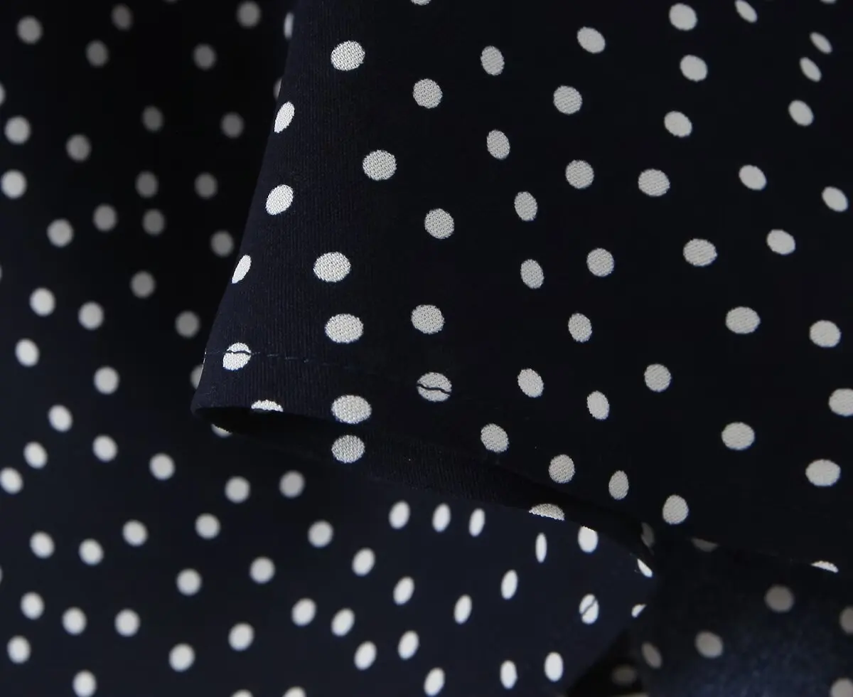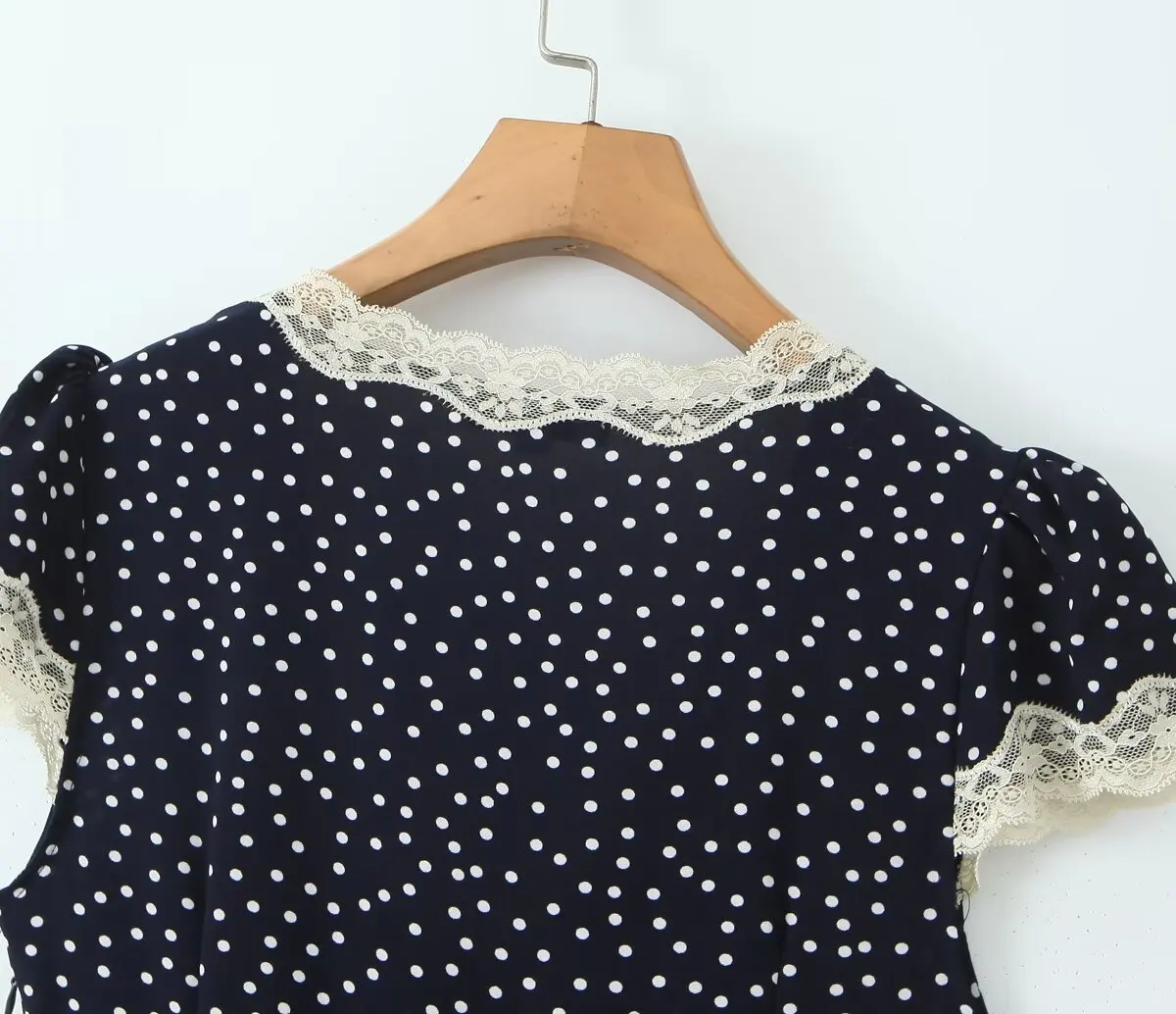 Victoria’s Vogue 2025 Women Navy Blue Polka Dot Long Dress Lace Trim V Neck Short Sleeve A-line Elegant Holiday Dresses Summe Maxi Robe