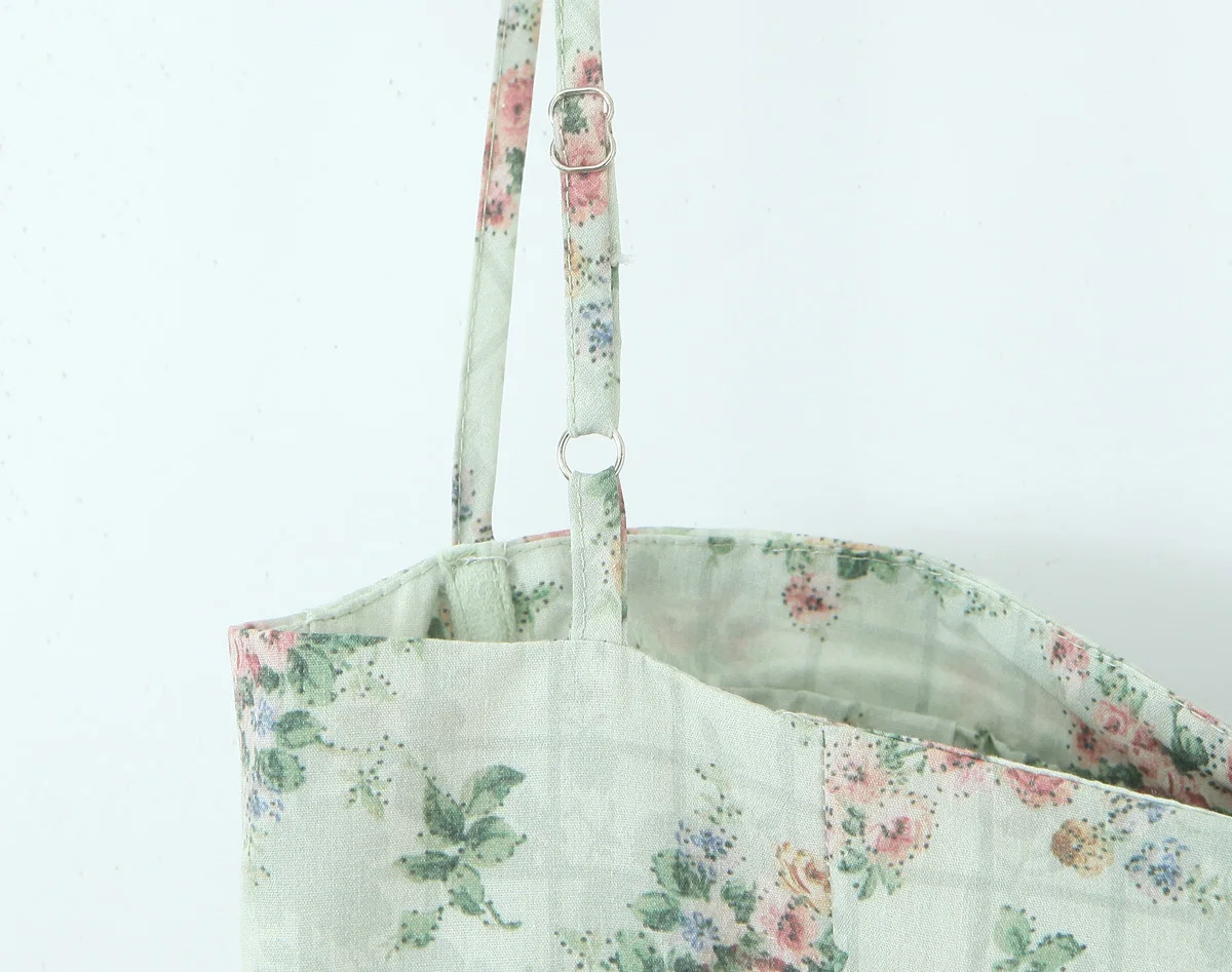 Victoria’s Vouge Green Floral Print Sexy Spaghetti Straps Dress Women Low Waist A-line Midi Holiday Summer Dresses Party Robe 2025 Vestido