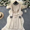 Victoria’s Vogue Brand Fashion 2025 Autumn Winter Women Knitted Long Dress Luxury Pearls O-neck A-line Sweater Dress Office Lady Vest