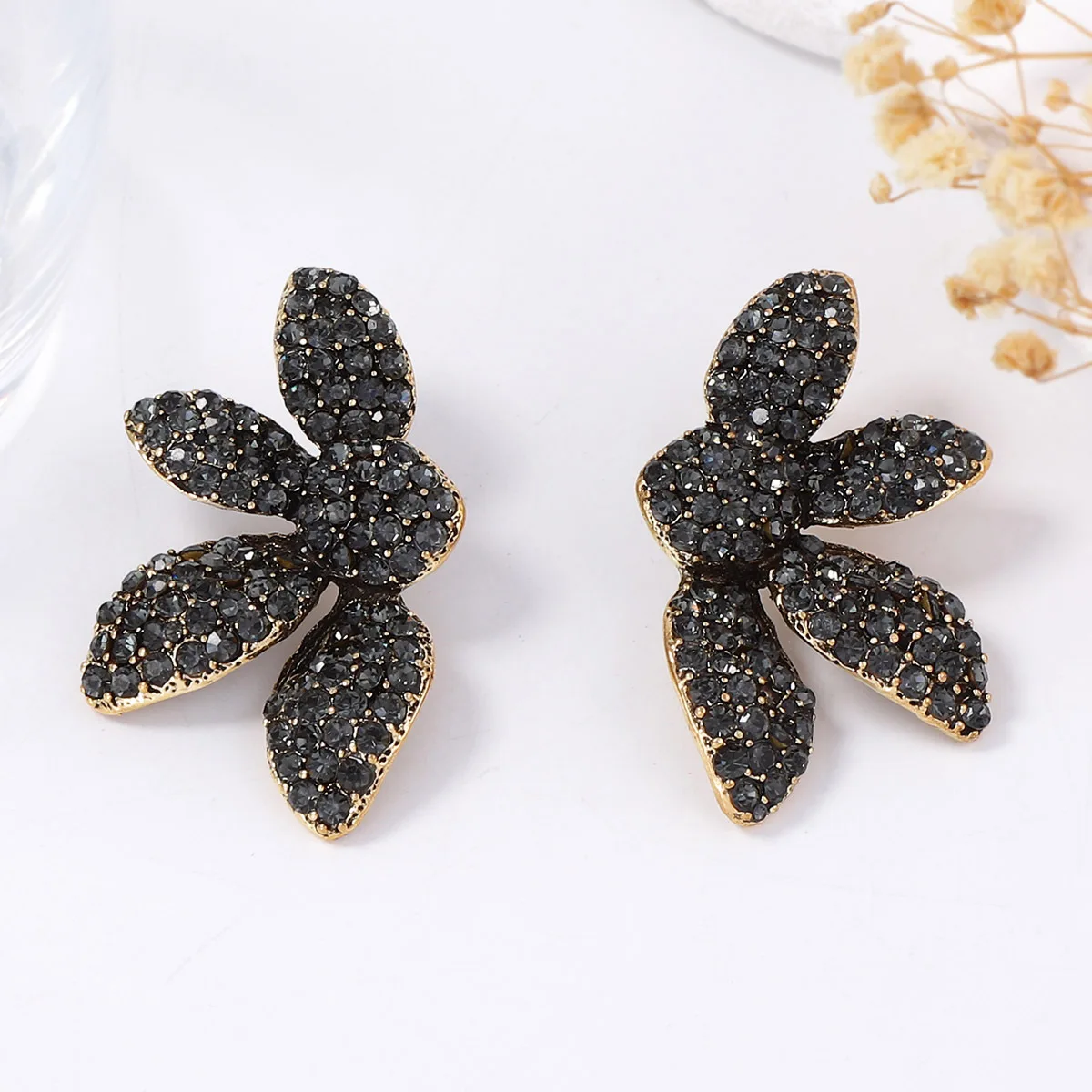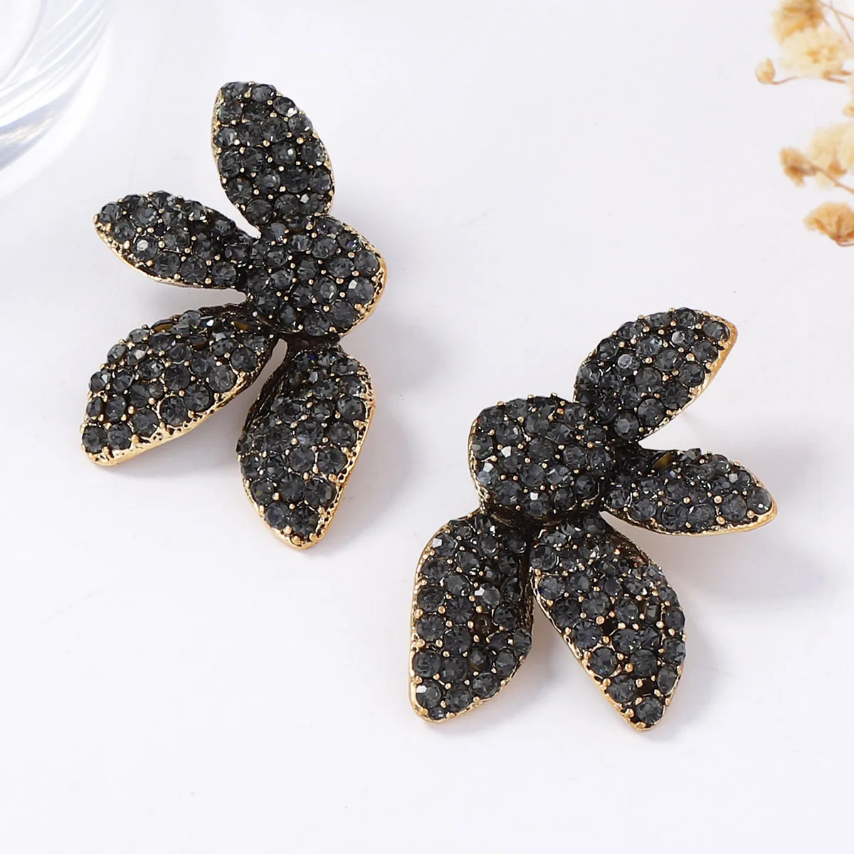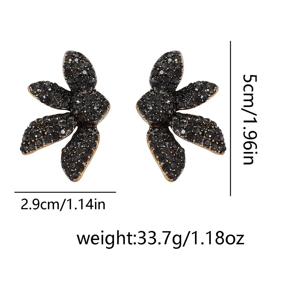 Victoria’s Vogue Vintage Gothic Black Rhinestone Flower Earrings for Women Fashion Holiday Party Jewelry Gifts