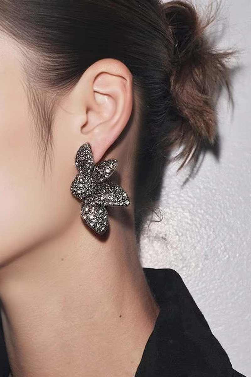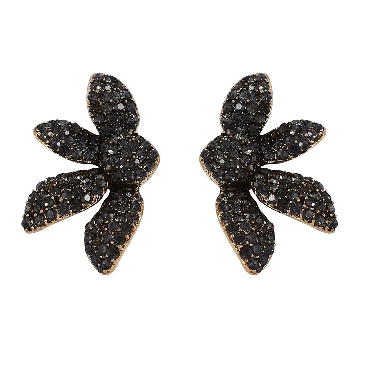 Victoria’s Vogue Vintage Gothic Black Rhinestone Flower Earrings for Women Fashion Holiday Party Jewelry Gifts