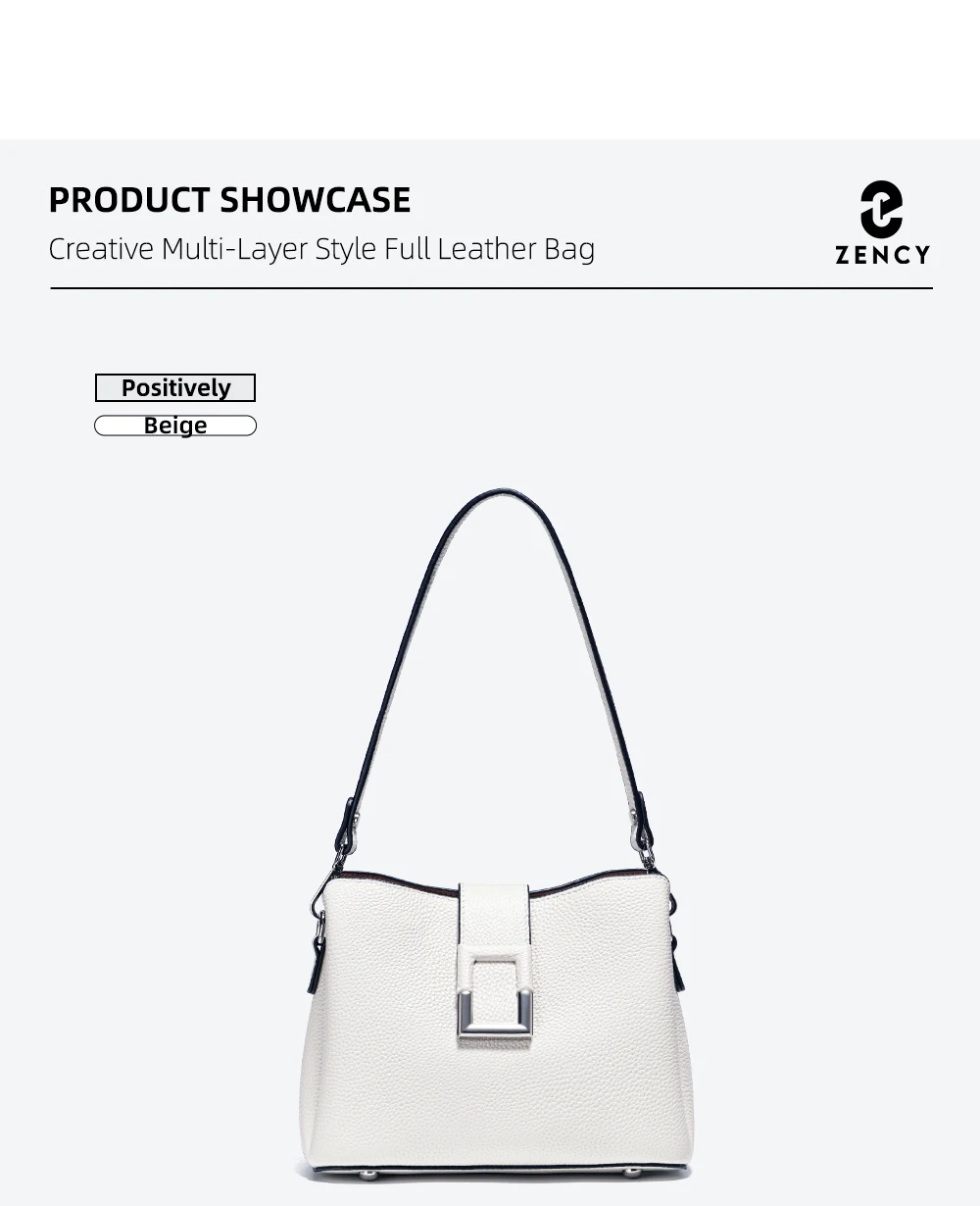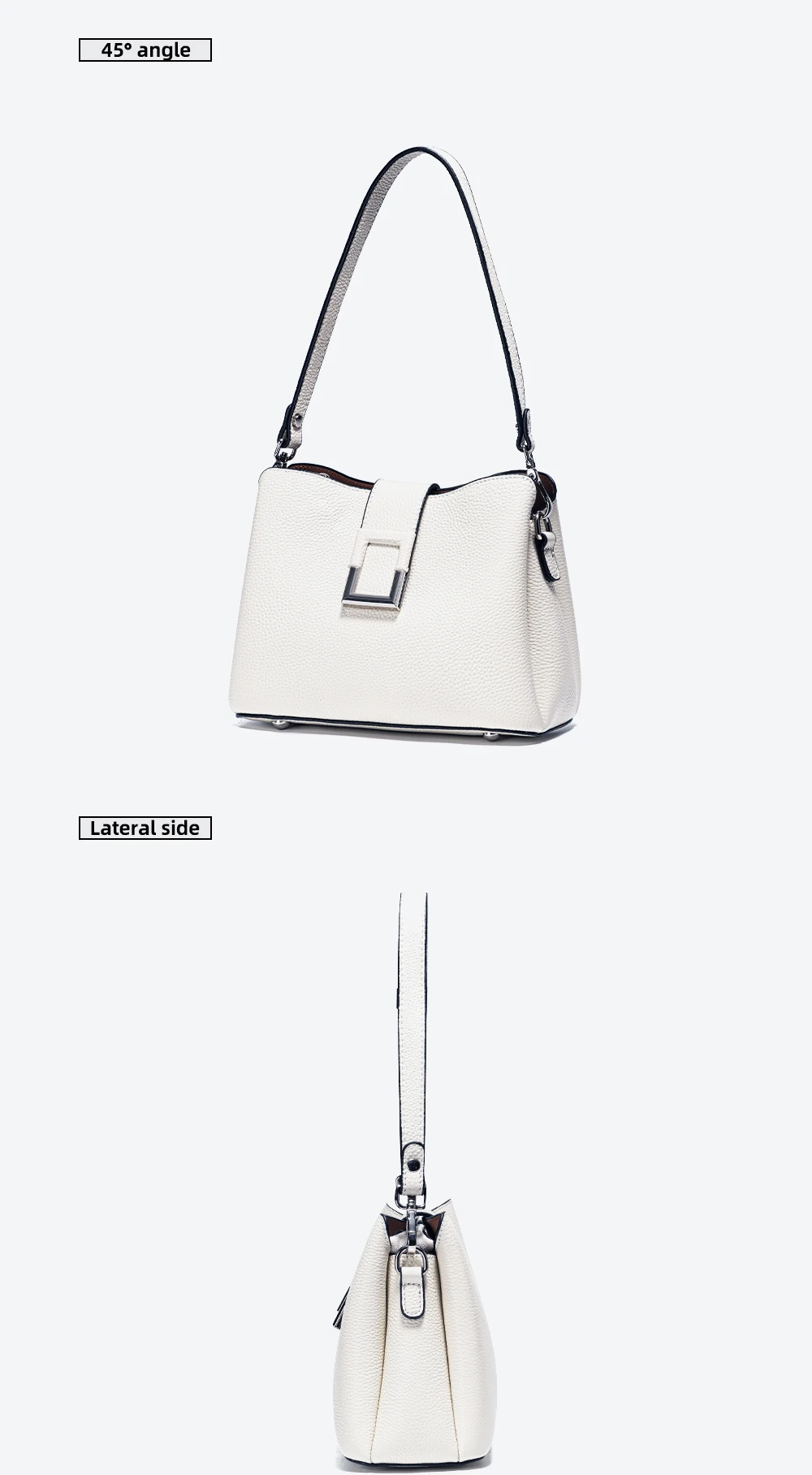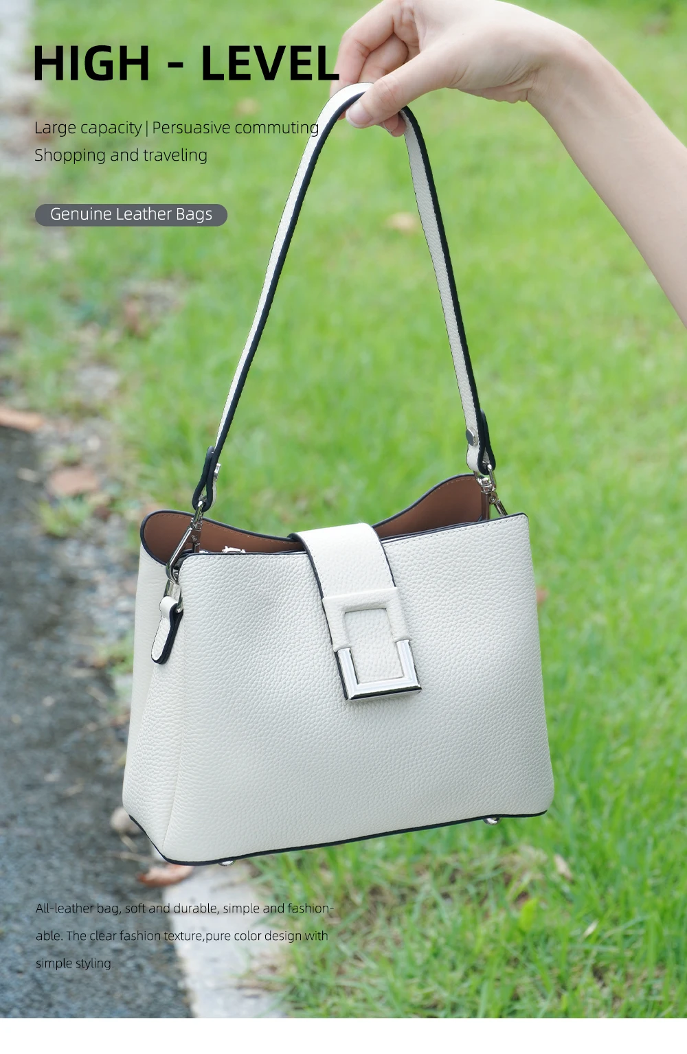 Victoria’s Vogue Genuine Leather White Designer Noble Shopper Shoulder Bag Commuter Large Bucket Handbag Women Tote Bucket Cross Body Bag